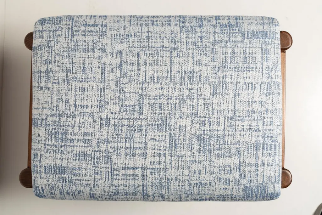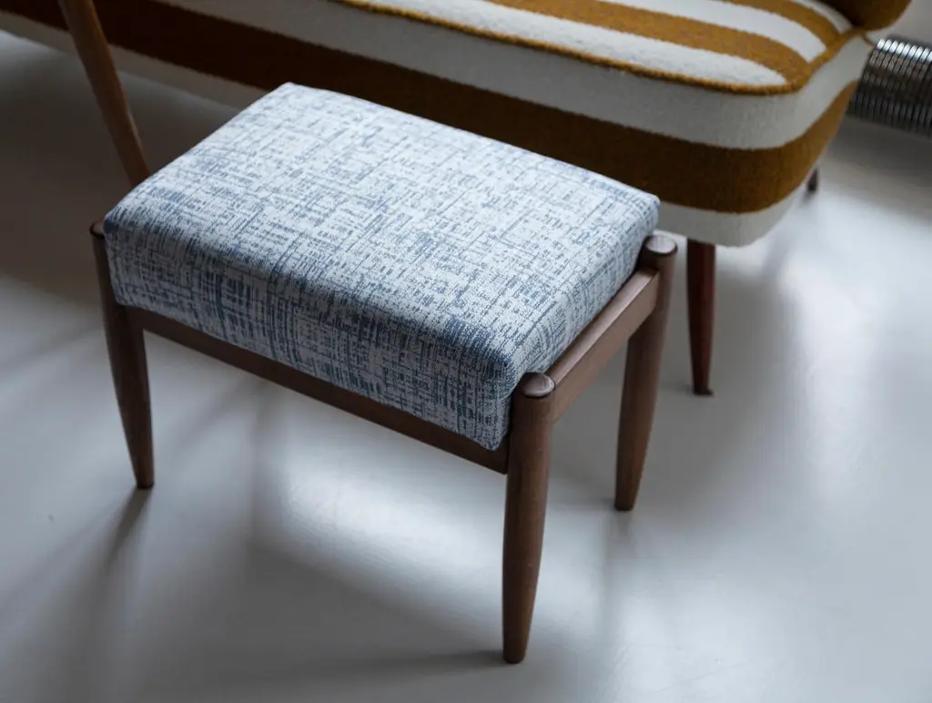 Midcentury Vintage White And Blue Linen Stool, Edmund Homa, Europe, 1960s
