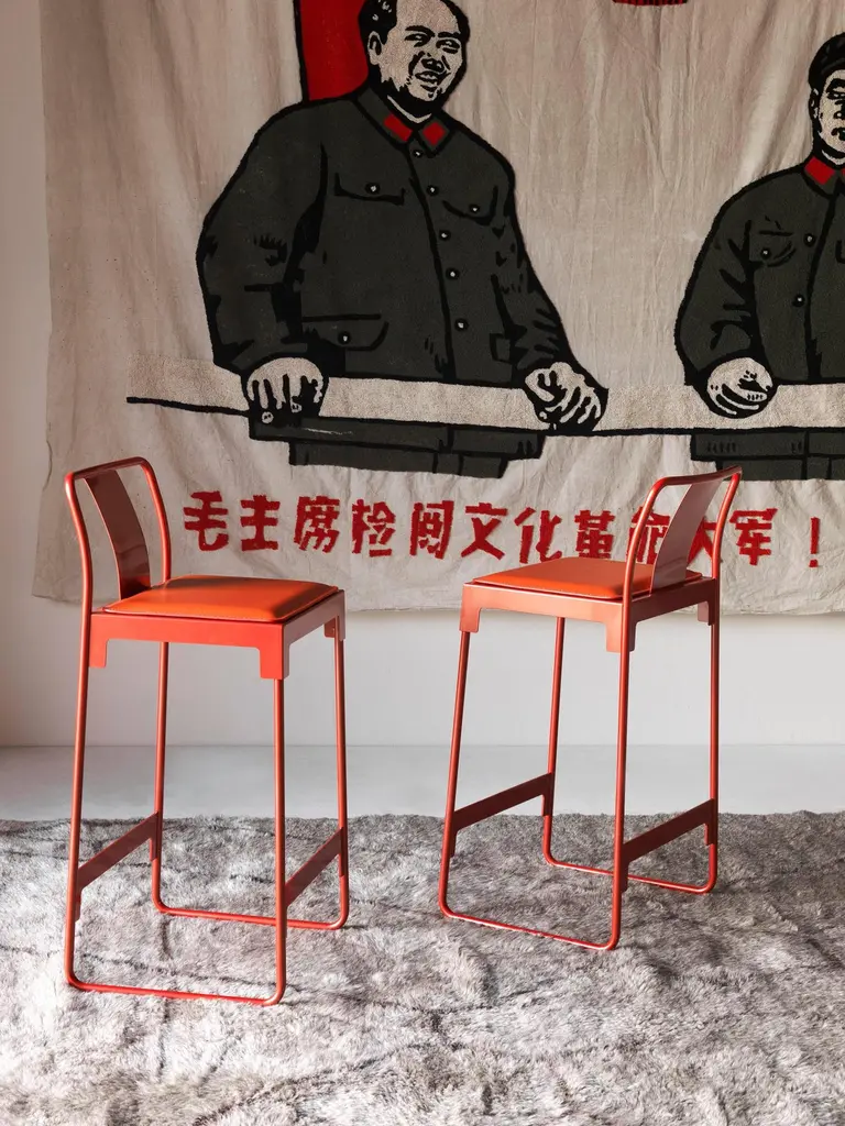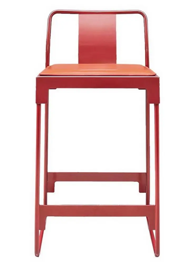 "Mingx" is an indoor low stool with back, designed by Konstantin Grcic and manufactured by Driade. Structure in printed steel sheet and rod with polyester painted in orange, light grey, bronze or black colors. Feet in ABS. Leather seat.Indoor use only.DIMENSIONS:D. 16.5", W. 17.7", H. 34.6", Seat H. 25.9"The design of the Mingx collection has reference to the same tubular profile that also inspired the ZigZag bookcase and develops into an extensive family of elements: seats, stools and tables, establishing a harmonious mutual dialogue that also extends to the bookcase. Mingx collection consists in a rich array of family members that harmoniously interact: chairs, stools and tables. This year, Grcic extends the Mingx collection to include a new set of tables and console tables in elegant oak finish. "Mingx" as a name clearly refers to the Ming dynasty that influenced development of the Chinese culture to the extent of making China the hub of Eastern trade. It's no coincidence that the seats are inspired by the archetype of ancient Chinese, originally made of wood: a chair, an armchair and low chair with armrests and leather seat matching the colour of the metal frame. Two stool options, one with backrest and one without, diversify the set of seats. Tables with black walnut tops and stainless steel tubular frames are also presented in a projecting version, like the desk and coffee table. Four colour options are available for the leather seat: bronze, black, grey and orange. Mingx collection is also available in outdoor version with quartzite or metal tabletops, chairs upholstered with outdoor fabrics and frames with a protective electrophoresis treatment. KONSTANTIN GRCIC was born in Munich in 1965. He apprenticed as a cabinet maker at John Makepeace School in the UK from 1985-1987. In 1990 he earned a MA in Industrial Design at the Royal College of Art in London. He founded Konstantin Grcic Industrial Design (KGID) in 1991. The office specializes in various fields of design ranging from furniture and Industrial products to exhibition design and architecture related work. KGID is working for some leading names of the design industry. Many of their products have received international design awards and form part of the permanent collections of the world's most prestigious museums. Grcic defines function in human terms, combining formal strictness with considerable mental acuity and humour. Each of his products is characterized by a careful research into the history of design and architecture and his passion for technology and materials. Known for paired down-down pieces, Grcic is often called a Minimalist but the designer himself prefers to speak of simplicity.