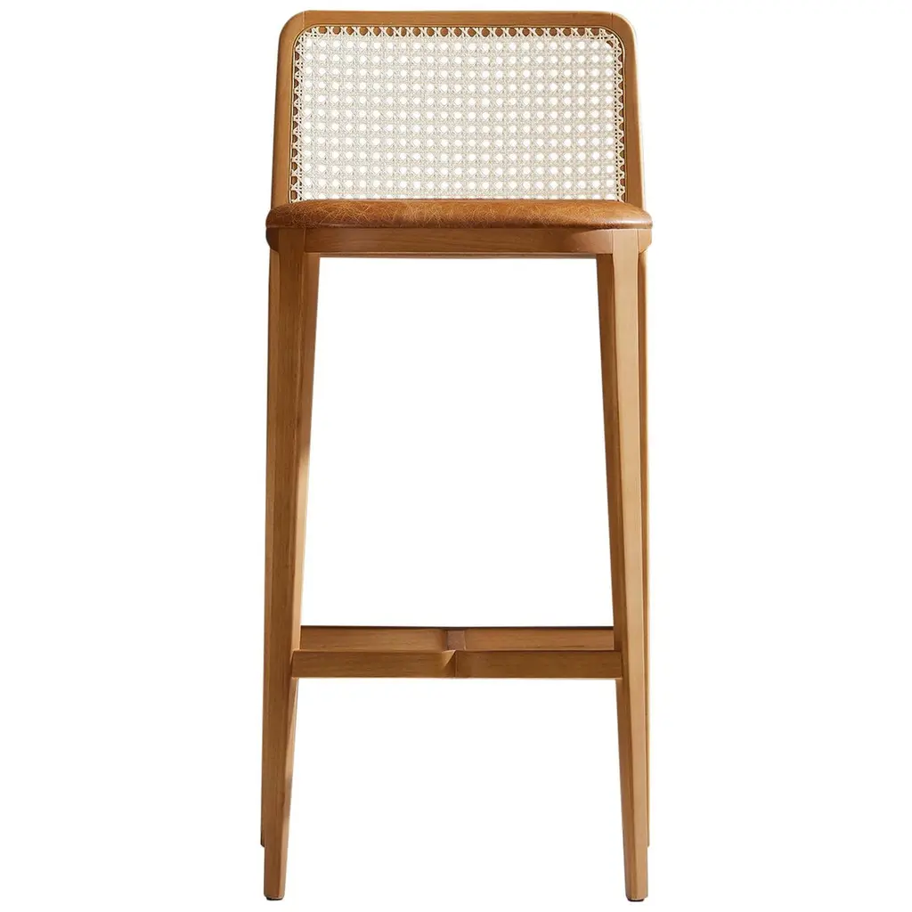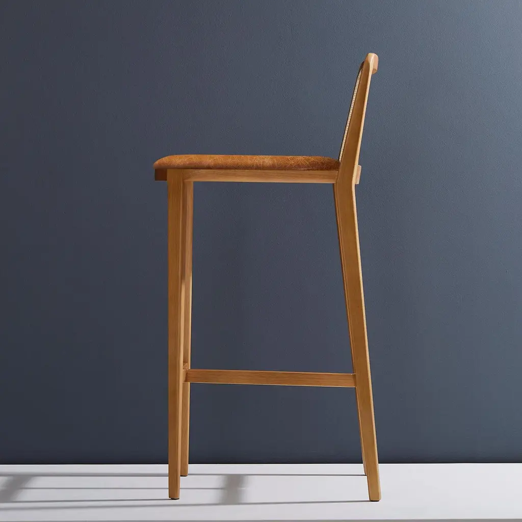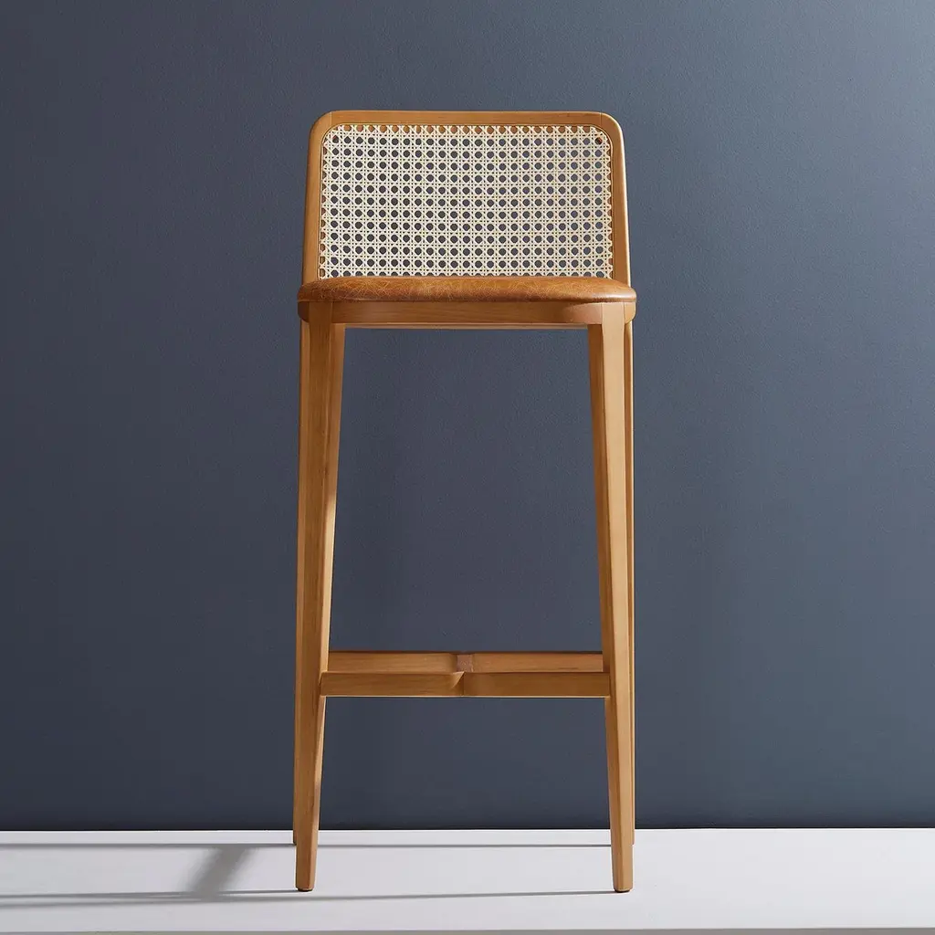 Minimal Style, Solid Wood Stool, Bar Or Counter Height, Caning And Leather