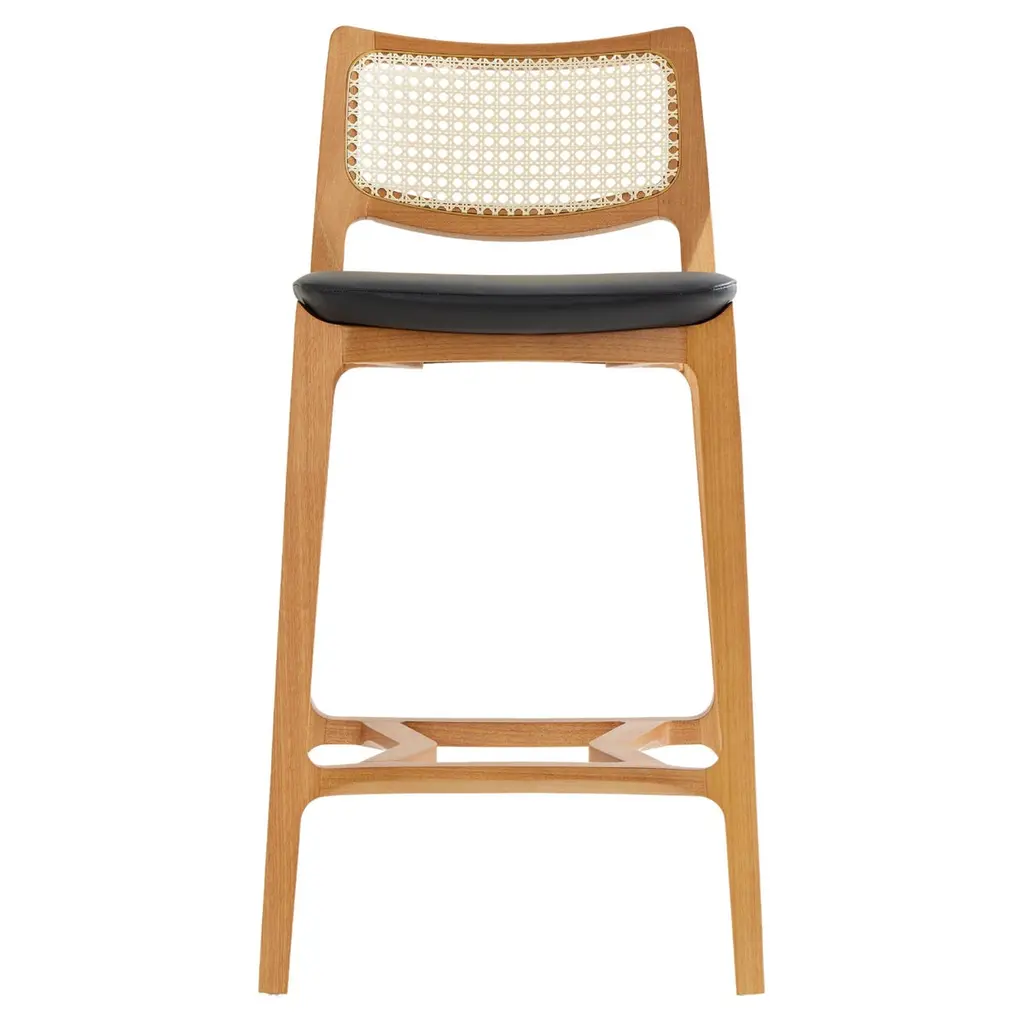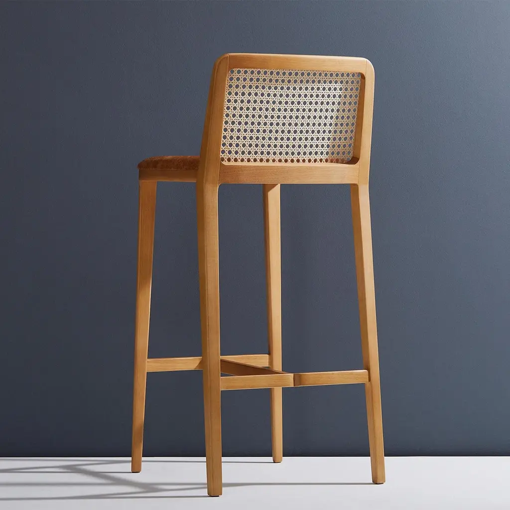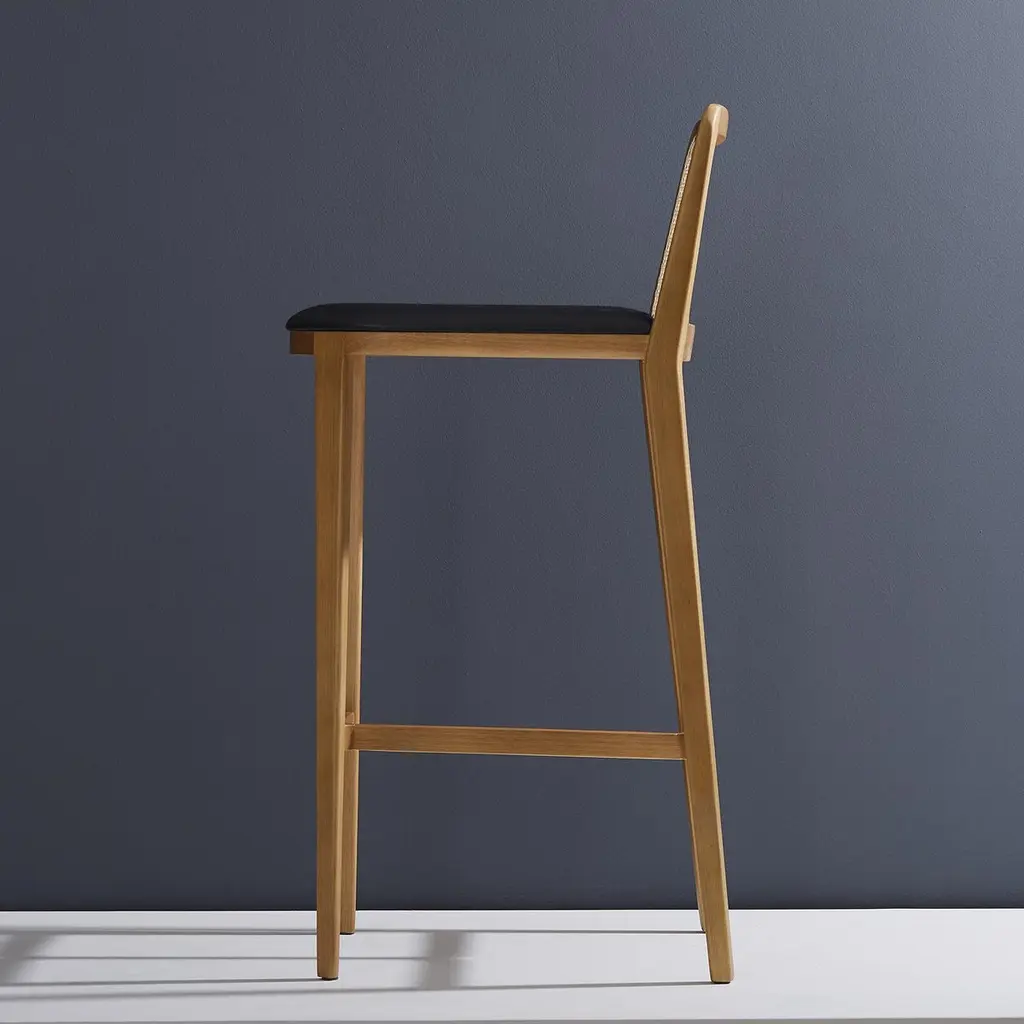 Minimal Style, Solid Wood Stool, Bar Or Counter Height, Caning And Leather