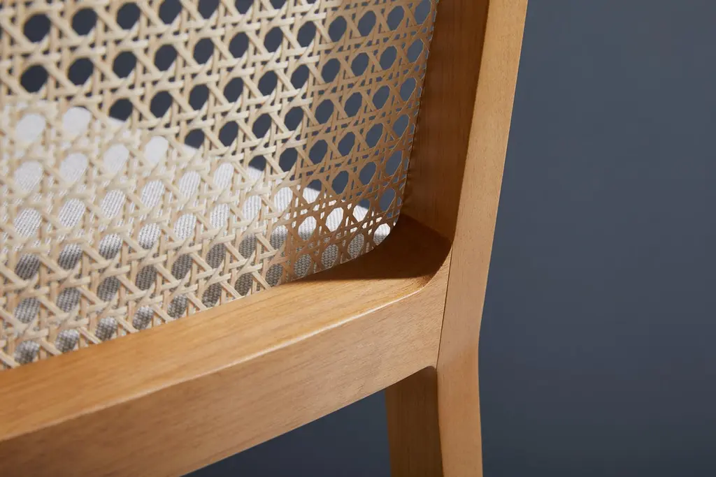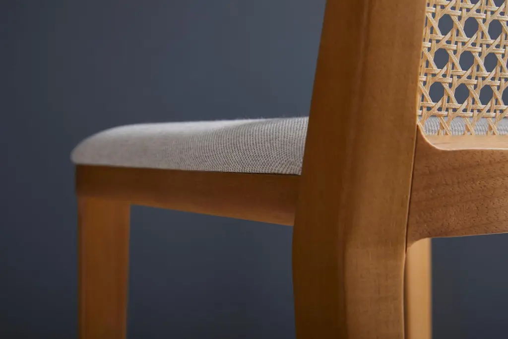 The Wing chair solid wood collection, flexibility, modern aesthetics, comfort and softness are the keywords for this collection. The concept is inspired by the B-52 plane design, this inspiration gave us the freedom to create a collection where the design appropriate subtle elements, harmonic transitions and thin but resistant wood thicknesses, that gave life to a unique and contemporary collection. Our studio objective was to abstract most of the figurative elements and arrive in the very sweet spot in this design, driving the details in a three dimensional way. All our objects are drawn using the Da Vinci's "golden section", and the wing collection is not an exception, this assures pleasing proportions. The Wing chair collection is crafted with passion using premium materials and the latest technologies, and a very precise quality control, on its beauty there is the subtle variations between the wood veins in a real living item without ethnic appeal. All this qualities converge in and merge in a collection made to participate in the life of its users like a breeze, comfortably, pleasant and positive. Woods: Standard we offer three wood stains a black ebonized and we can also create custom nuances based in your physical sample to harmonize it and approximate it to another wood tonality. Upholstery: Natural and vegan leathers plus a selection of premium textiles to choose from. We can also source different materials on demand and or make COM. Canings / solid back: available in two meshes, the hexagonal Classic pattern and a frize closed patter. Available in Natural, Walnut or black tonalities. This piece seat height may be customized for your needs of counter height or bar height. The stool seating height is customizable in up to 29in (74cm) or bellow.Our pieces are made with passion and attention, quality, comfort and design are our priorities, for the daily user, as we use ultra premium materials that are carefully manufactured with manual processes and solid wood sculpting, please consider up to 2in tolerance in the dimensions plus or minus. The seat height might impact the overall dimensions inside of this range, as we adjust from bellow.