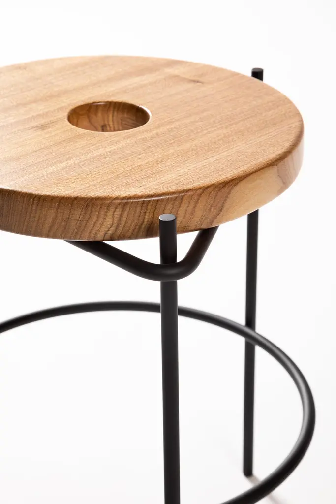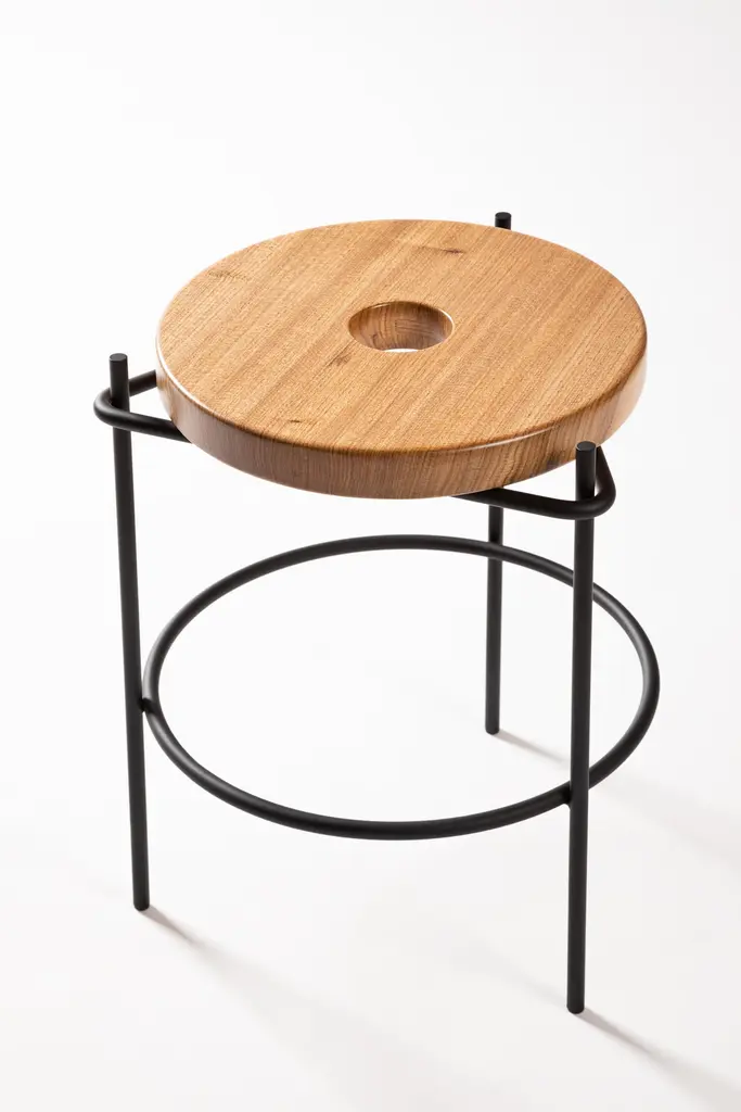 Thais Stool by Samuel Lamas, 2022The Thais Stool by Samuel Lamas exemplifies the seamless blend of minimalism and functional elegance. Crafted with precision, this stool features a solid wood seat with a central circular cut-out, resting on a sleek, black carbon steel frame. Choose from three exquisite Brazilian woods: Freijó, Cumaru, or Imbuia. The contrast between the natural wood and the industrial frame provides a striking visual appeal, making it a versatile addition to any contemporary interior.Key Features:Dimensions: Customizable to fit your space perfectlyMaterials: Premium Solid Brazilian Wood (Freijó, Cumaru, or Imbuia) and Black Carbon Steel FrameAesthetic: Light and simple, with a focus on geometric and essential designDesign: Contemporary minimalist style that blends strength and eleganceCustomization Options:Wood Types: Freijó, Cumaru, or ImbuiaMetal Frame: Customizable in your desired colorThe Thais Stool is ideal for both residential and commercial spaces, embodying the essence of modern Brazilian design. Each piece is thoughtfully designed with architectural and geometric reasoning, ensuring stability and comfort with minimal material. This sustainable approach promotes a light and simple aesthetic.Care Instructions:To maintain the pristine condition of your Thais Stool, regularly dust with a soft, dry cloth. For deeper cleaning, use a mild detergent and a damp cloth, ensuring the stool is completely dry before use. Avoid prolonged exposure to direct sunlight and harsh weather conditions to preserve the color and material integrity.Shipping & Returns:This bespoke item is custom-made and non-returnable, reflecting the personalized attention to detail and craftsmanship invested in each piece. Please contact us for detailed information on shipping and delivery options.Elevate your interior with the Thais Stool, a perfect blend of modern Brazilian design and minimalist elegance. Enjoy the timeless beauty and functionality of this exquisite addition to your space. Each stool is crafted with precision and care to meet your unique style preferences. Made to order in São Paulo, Brazil.
