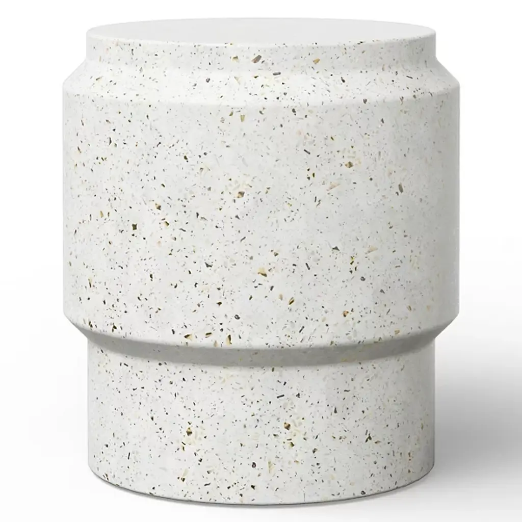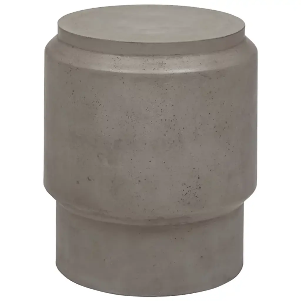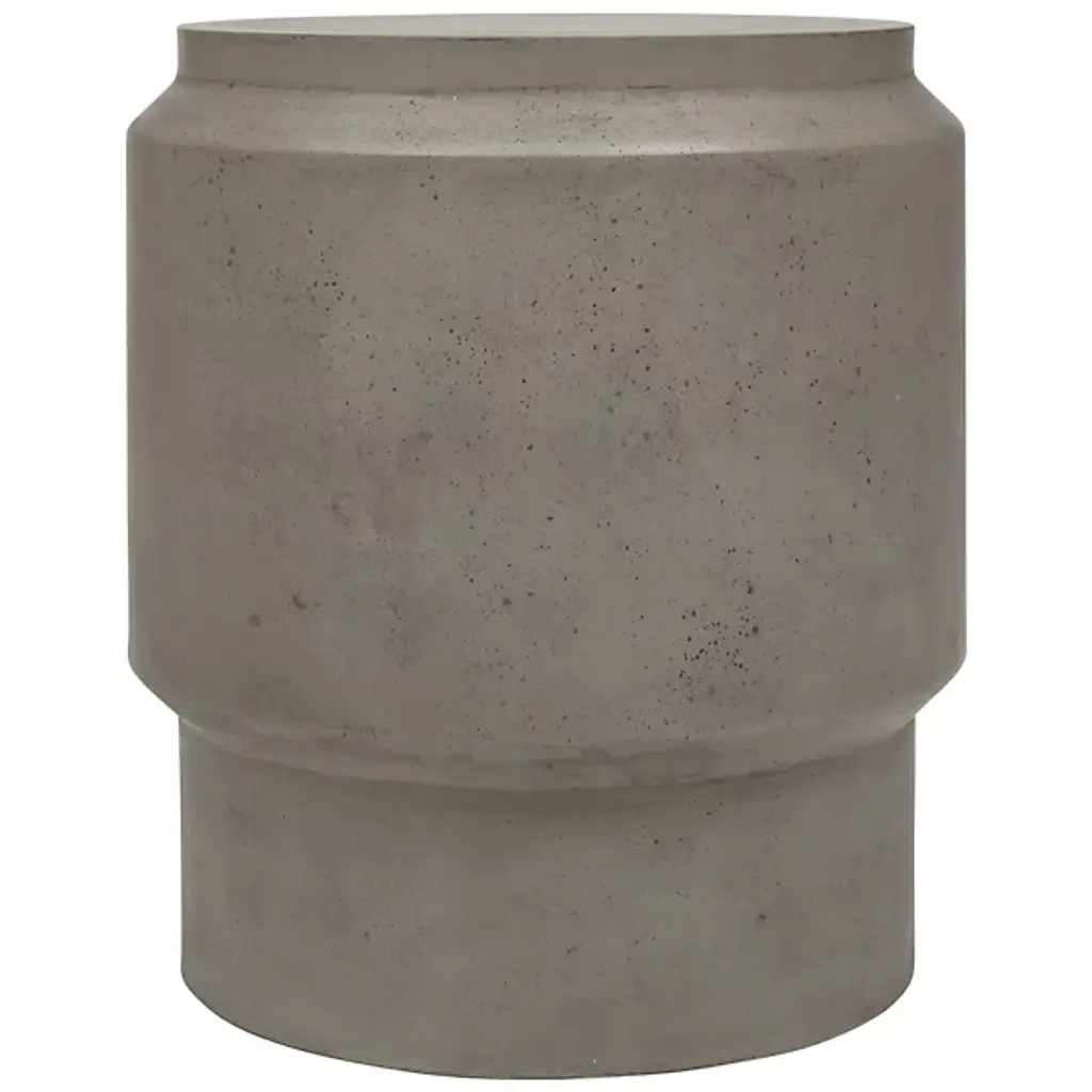 Smooth seating with an industrial vibe. As its name suggests, the Mixx Barrel Accent Stool by Urbia is a round, clean-lined piece made of fiber-reinforced concrete. Not only is the concrete material exceedingly durable and solid-looking, but it actually has a surface patina that deepens with time and use. Use this accent stool as supplemental seating or even as a small side table in a living room or other lounge area, indoors or out.