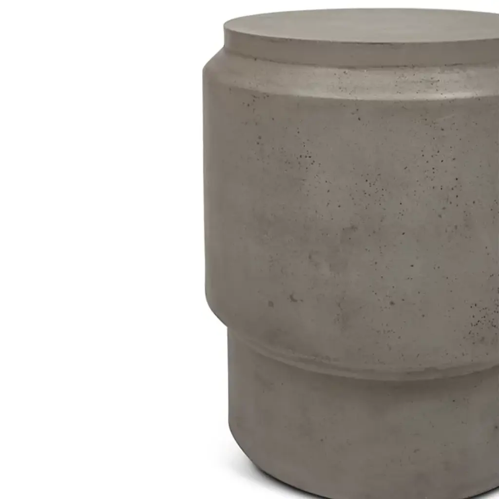 Smooth seating with an industrial vibe. As its name suggests, the Mixx Barrel Accent Stool by Urbia is a round, clean-lined piece made of fiber-reinforced concrete. Not only is the concrete material exceedingly durable and solid-looking, but it actually has a surface patina that deepens with time and use. Use this accent stool as supplemental seating or even as a small side table in a living room or other lounge area, indoors or out.