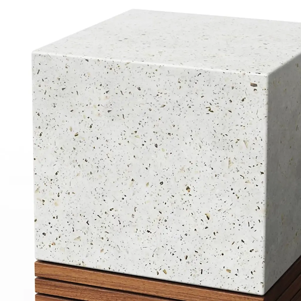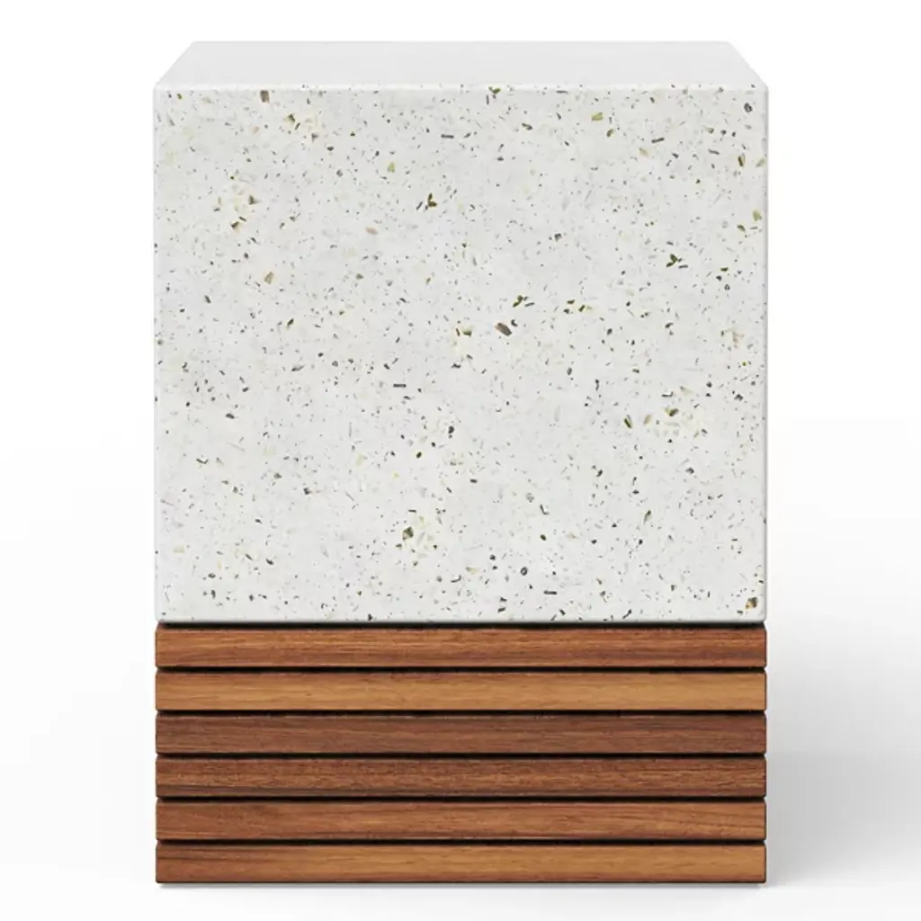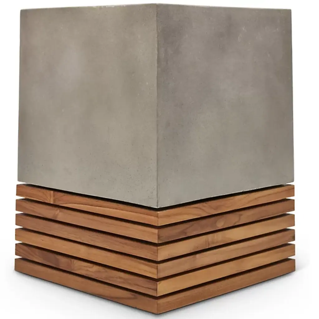 Revised blocking for a modern space. Topped with a cube of fiber-reinforced concrete, the Mixx Stecca Corto Stool by Urbia makes a fitting addition to an industrial chic aesthetic or an interior design based on raw materials. Its slatted teak base lends a contrasting natural touch, giving this stool the versatility to suit a wide variety of visual concepts. Additionally, each stool is unique due to its hand construction, yielding unique color, size and textural differences on the piece's surface. Other Stecca collection items are shown in images for inspiration.