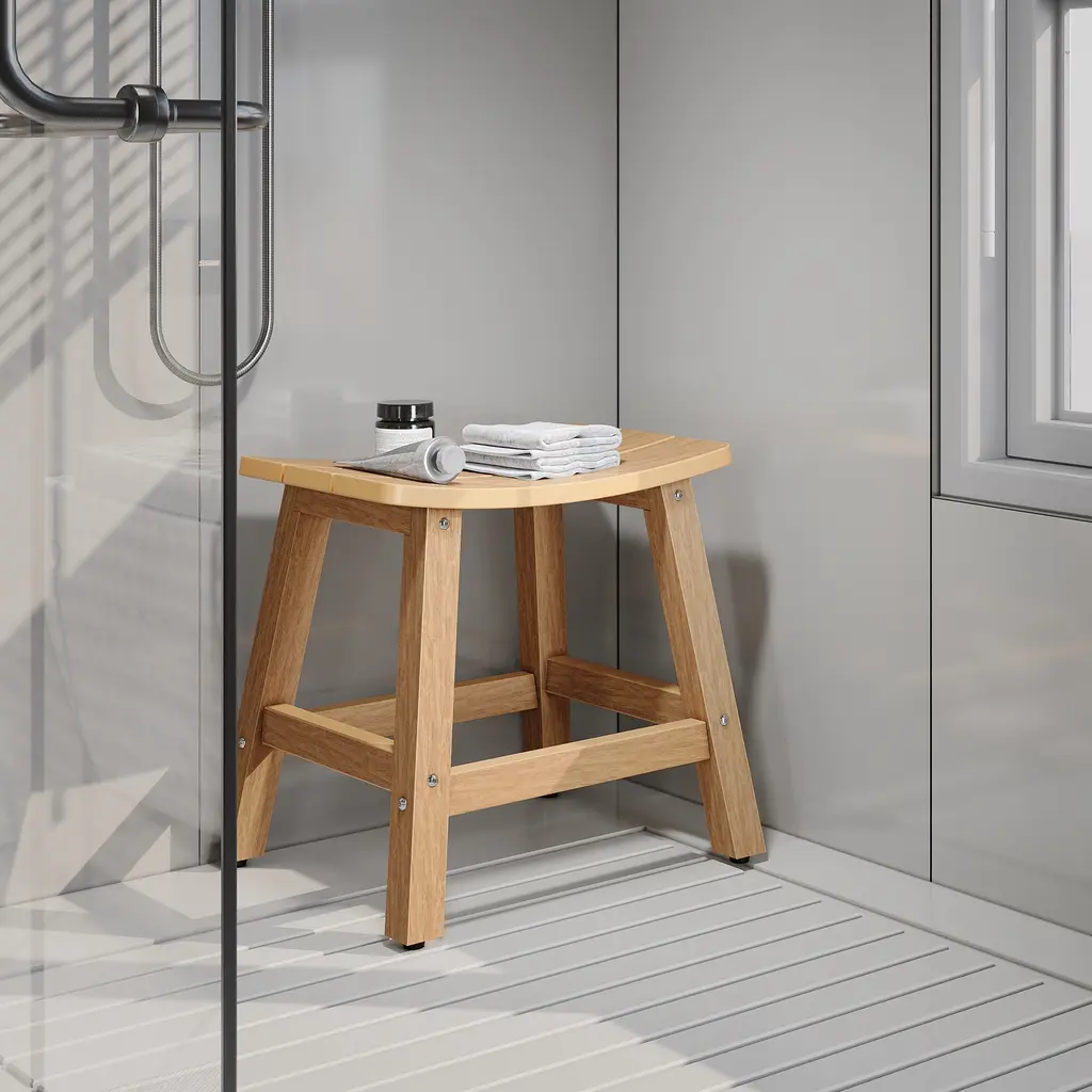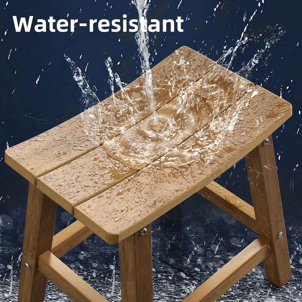 Moasis Natural Teak Plastic Wood Shower Shaving Footrest Stool - Black