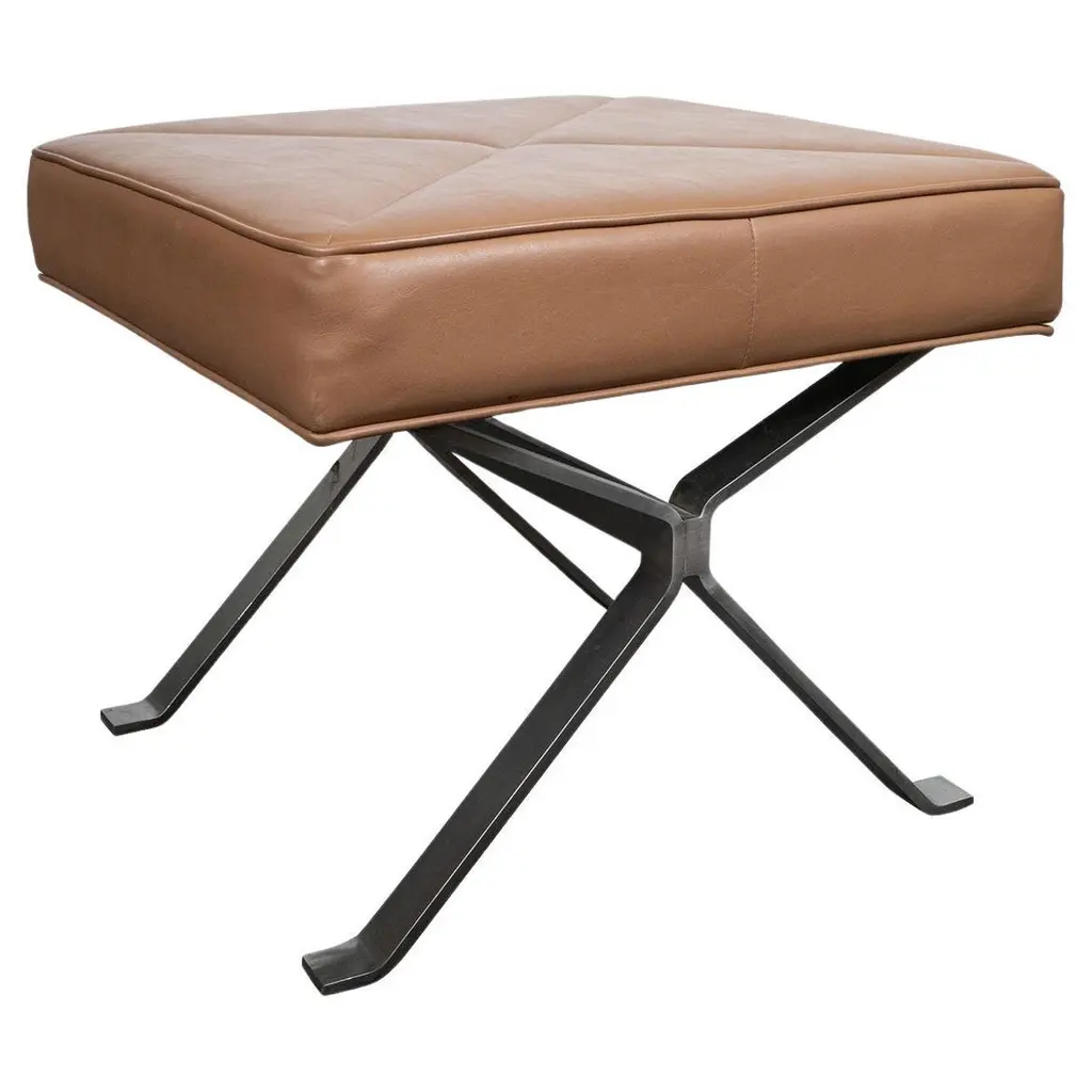 Modern Tufted Leather X Frame Stool