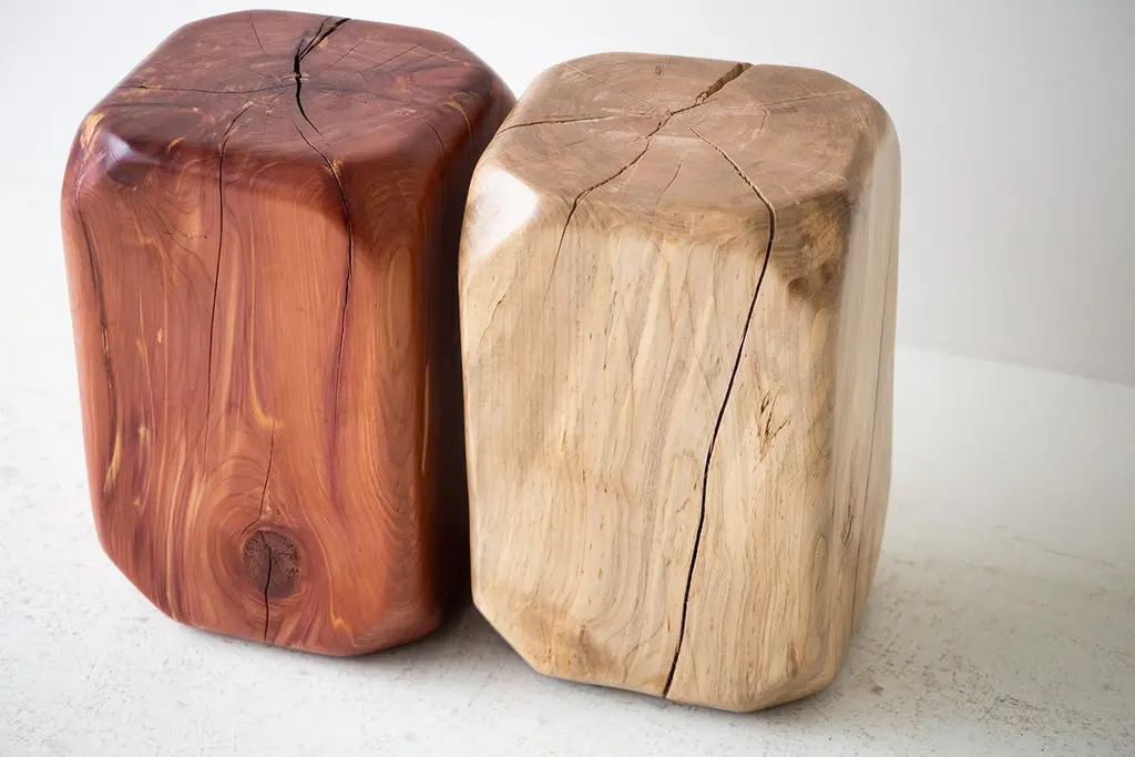 Please scroll down to read IMPORTANT INSTRUCTIONS ABOUT OUR STUMPS before purchase!Why buy BERTU HOME stumps?Kiln DriedOur stumps all go through a drying process in our kiln, sometimes for up to a month. We are meticulous with bringing each and every log to a specific moisture level. This process helps with major cracking, long-term moisture issues, and bugs.Eco FriendlyIn an effort to replenish the trees we use, we plant 50+ trees a year. In addition, we practice salvage logging. Where do we source these? Some of the trees fall naturally. Some have damage from severe wind, lightning, flood, disease, or other natural disturbance so they need to be cut and removed before they fall. Others are fresh cut because people want them off their land. Salvage logging may reduce erosion, reduce intensity of future wildfires, and slow buildup of pest insects.Family OwnedThese are made from our family to yours. Quality is of utmost importance, and we hand cut, de-bark, sand, and finish every piece with care. See how we do it here.Commercial GradeThese stumps are meant to be loved and used. Each is finished with a durable commercial-grade finish. This finish is tough enough for spills, kids, and holds up in hotel and hospitality settings.Please Note : These stumps will age naturally, and even more so being outdoors and exposed to the elements. Each is a solid log with its own unique character so we can not guarantee the finish won't fade or discolor as this varies per climate and log. This Modern Wood Stool - The Dublin is made in the heart of Ohio with locally sourced wood. This listing is for the maple (lighter wood) stump. Please specify if you would like the more sharp or softened edges. The stump can be used for a side table, a stool (the 18" for dining seat height), or grouped together for a coffee table. Each stool is made from a solid trunk of maple and the corners are beautifully angled and sculpted. Each piece is hand sawed, sanded, and sprayed with a commercial grade finish. Every part of the process is handled with care to honor the unique markings of each tree. Please note: these are prone to cracking. We love the look but these definitely are not for the person who wants a perfect square.... Lots of character. Cracks can even be as big as 1/2" wide due to proper drying in our kiln. The idea is that most of the cracking happens before it is sprayed, shipped, and in its new home. These are all slightly different in character and they may vary in size - No two pieces are exactly alike. Our team and clients absolutely love these."I love natural elements. I'm inspired by them and I love being surrounded by them. I also love modern furniture and accessories. When thinking of new products a few years back, I wanted to do a modern twist on something considered rustic and "country".Thus the whitewash stump table was born! It's important to our family to not only design and manufacture beautiful things, but to provide the best quality and experience. There is a lot of love that goes into each stump, as we hand pick and finish each one per order. Add a little piece of nature to your home in a modern way!" -- Gretta Jones // Bertu HomeIMPORTANT INFORMATION ABOUT OUR STUMPS...1. Please unpack your stump immediately and leave it out of any packaging. These are real pieces of wood and need to breathe!2. For OUTDOOR stumps : Though these are kiln dried and the wood can be used outdoors, sometimes when they arrive in different climates, humidity levels adjust and can affect the finish on top. We see this more often in direct sunlight. We do our very best and continue to make sure there are no issues, but we can not control climate. Solid wood and the elements are unpredictable and we will not be liable. The great thing about these logs is you can always sand them down and refinish.3. Wood naturally moves. These are solid pieces and for that reason, they are prone to cracking. You may get more cracks or bigger cracks in the first few weeks as the wood acclimates to its new home and climate.4. These stump tables have nylon glides (feet) underneath not only to make them easier to move around (they are heavy!), but also so there is nice air flow to the wood. The air flow is most effective on hard flooring. If you put these on rugs or carpeting, we suggest checking on the underside of your stump periodically to prevent any issues.5. We are not liable for any damages to property or people. If you have any concerns or questions you need to discuss, please write or call. We are always available, honest, and transparent about our products. Thank you and I hope you love these!SpecsPeriod/Model: New; Organic ModernSpecs: Maple, Natural Commercial-Grade FinishCustomizable: Yes! It's what we do :)DimensionsH: 18"W: 12" x 12"