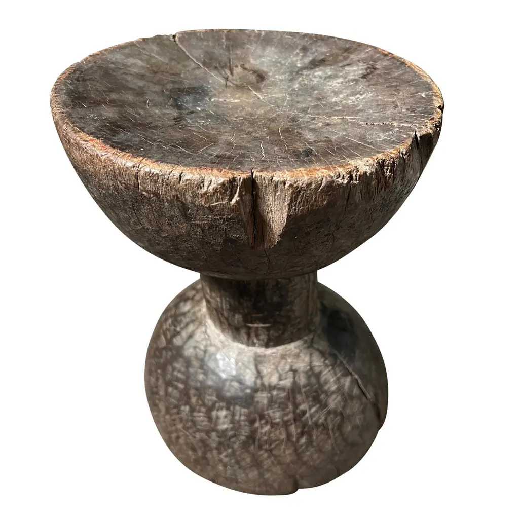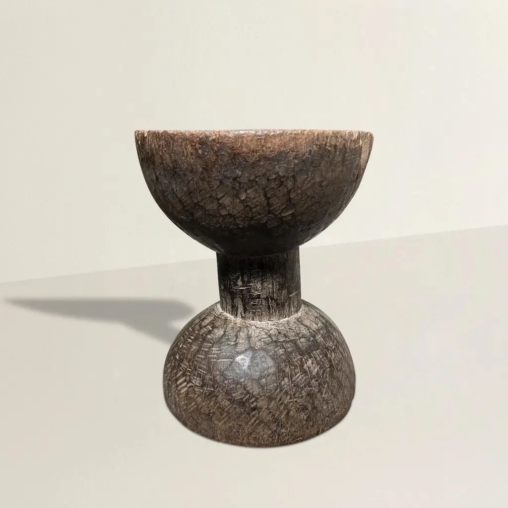 A chic modernist early 20th century Dan Peoples stool from Ivory Coast, carved from one piece of wood with a simple hourglass form, and the most wonderful patina only time could bestow. The perfect stool, or drinks table next to your favorite armchair.