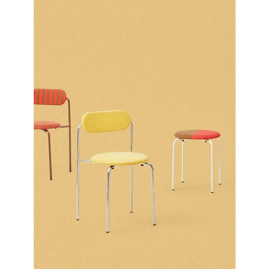 Lepo Product's Moderno stool is a longtime favorite among design lovers. The stool combines ergonomic comfort with a timeless silhouette, making it a perfect fit for both private homes and public spaces alike. Designed by Professor Yrjö Kukkapuro in the early 1960s, the Moderno collection was originally born from a brief to create a fitting chair for a shoe store. The result was not just one chair, but a whole family of seating options, including work chairs, café chairs and rocking chairs. Today, the beloved classic has been refreshed with a contemporary touch. The Moderno stool is now upholstered in a stripe fabric designed by Danish designer Stine Goya, adding a playful and joyous flair to the chair's minimalist form. The harmonious color palette and understated metal frame ensure the stool stands out just the right amount, blending effortlessly into both minimalist and more eclectic décors.
