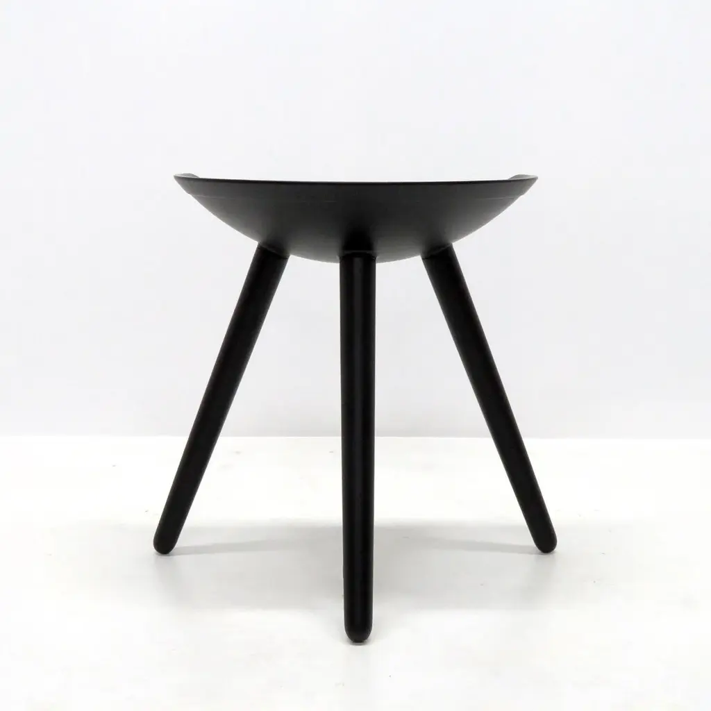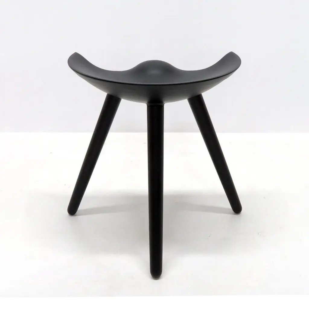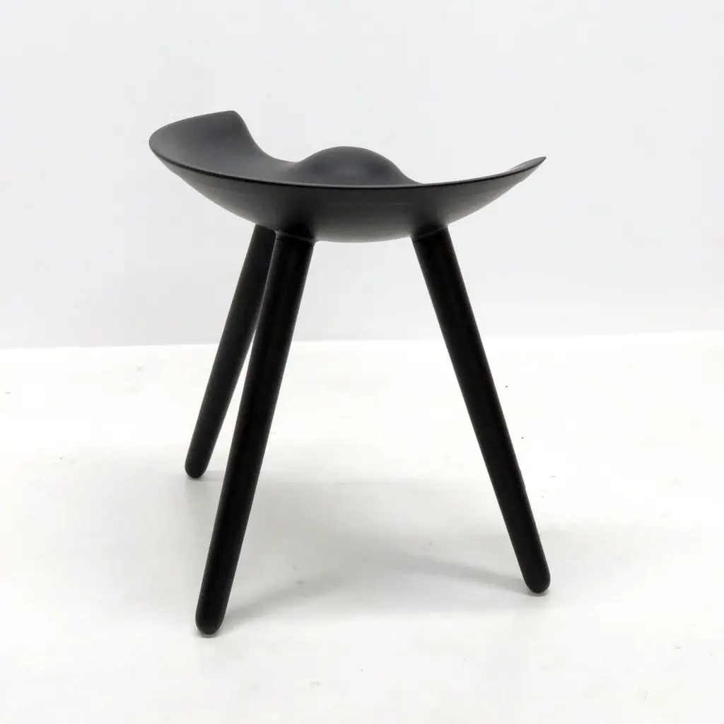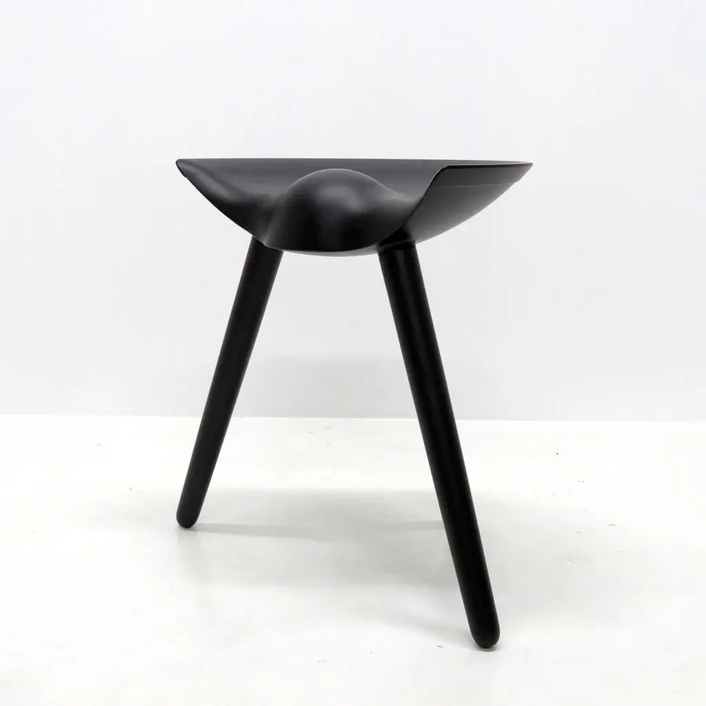 Wonderful stool by Mogens Lassen, in solid, black-stained beech wood with a semi-circular seat on three tapered, round legs, manufactured and branded 'By Lassen, Copenhagen'. Priced individually.