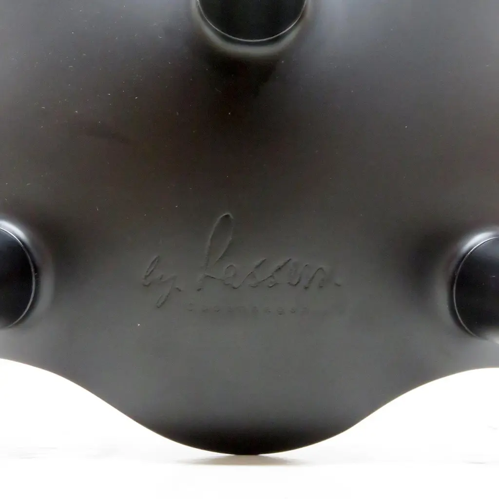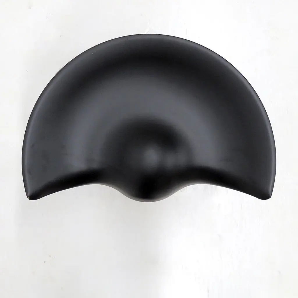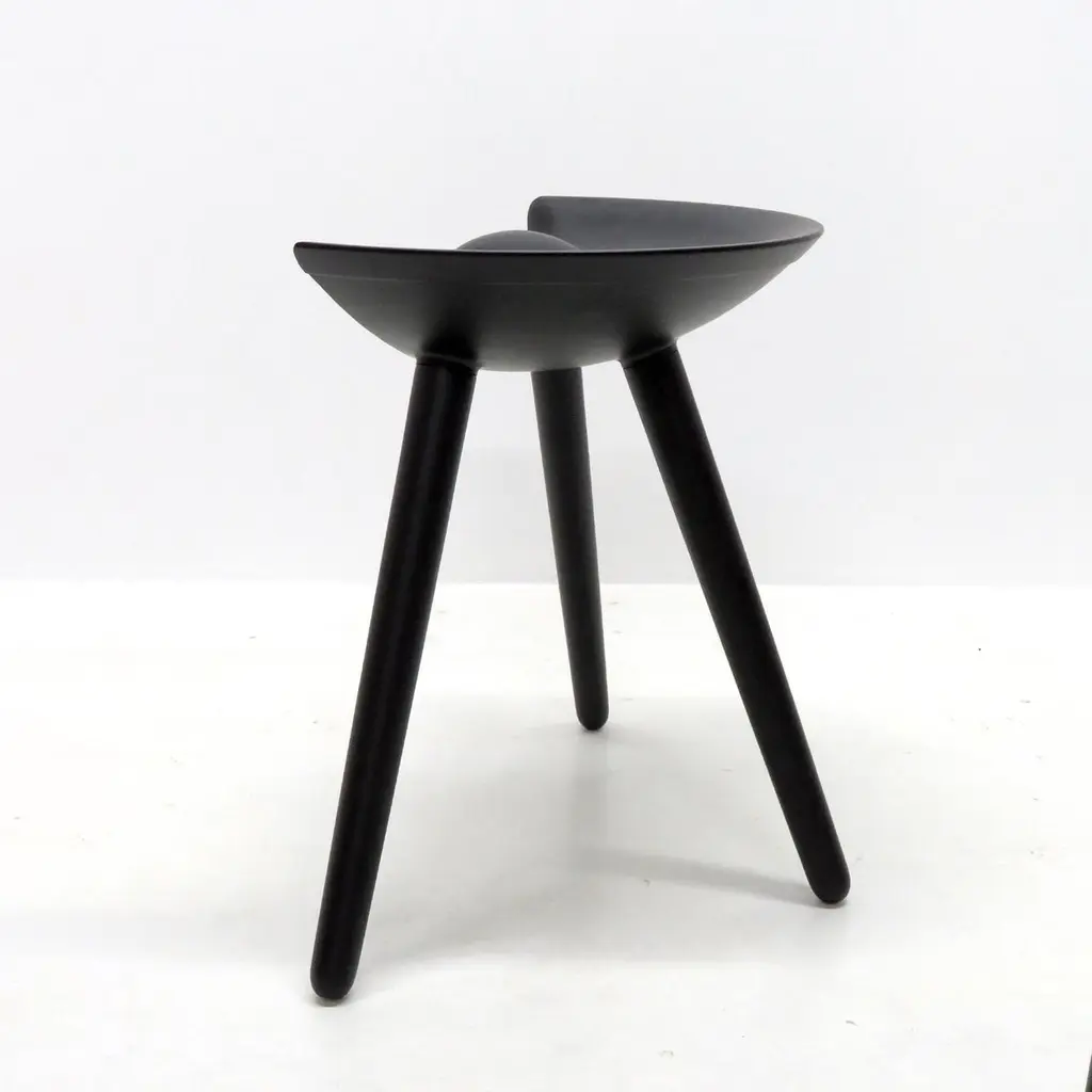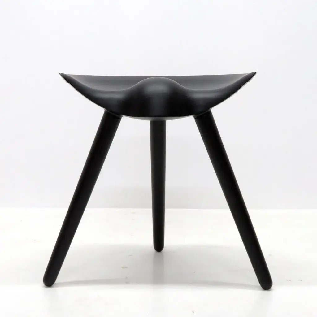Wonderful stool by Mogens Lassen, in solid, black-stained beech wood with a semi-circular seat on three tapered, round legs, manufactured and branded 'By Lassen, Copenhagen'. Priced individually.