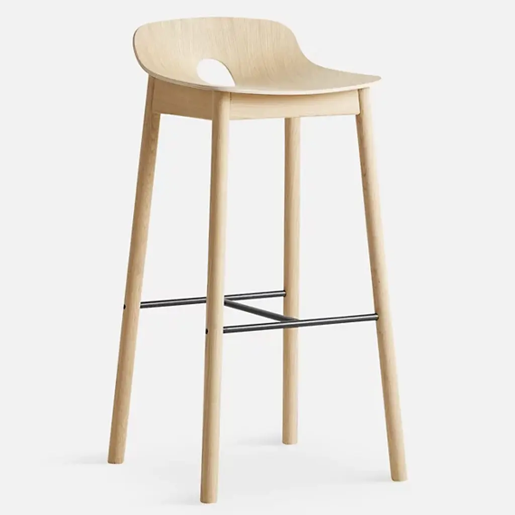 Presented by Woud, the Mono Stool is a contemporary luxury furnishing with a minimalist approach. Composed of polished solid wood and made in Latvia, the seat’s silhouette is understated and slightly sculptural with a decorative circle puncture at the center back, while a supportive intersection of bars adds a contrasting focal point at the base of the stool. Display the Mono as a solo piece or place it in multiples to complete your design vision.