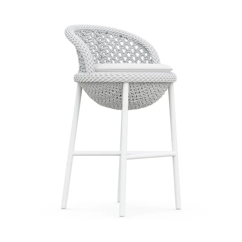 Detail is the name of the game Both captivating and sleek, the Montauk Stool from Azzurro Living offers an outdoor seating solution where both function and detail are front of mind. Featuring a matte white aluminum frame, this stool offers handwoven rope detailing in the style of macrame, offering a familiar, yet elevated update to a classic design. Topped with a Solvita Performance Fabric upholstered high-density foam cushion, this stool is ready to take on the elements and offer UV and stain protection. Designed for both indoor and outdoor living, this stool is suitable for your poolside bar area or back deck high-top table seating group. Simply pair with your favorite friends and a pitcher of sangria for the ultimate afternoon relaxation set. Why We Love It: Features