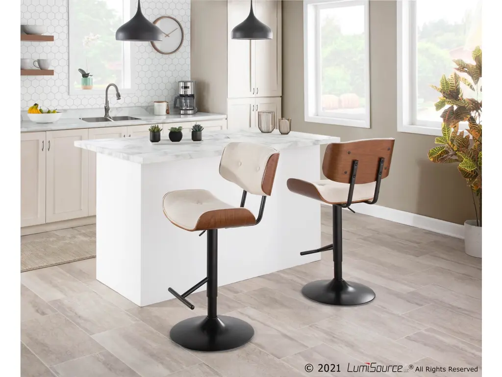 Formal lightness and a sensation of softness describe the “extra-soft” dining seatings of the Montera collection, designed by Roberto Lazzeroni. In a perfect balance between comfort and design, Montera Mas emphasizes the organic, sinuous lines of the seat and the characteristic wings of the backrest that hug the body with increased cushioning and an enveloping support.The Montera Mas stool, upholstered in Pelle Frau® leather or removable fabric, is available in two heights and is marked by the softness of the seat, made of polyurethane foam. The metal base is composed of tubular steel legs, available in multiple finishes. The legs are connected by a footrest ring in the same finish as the base and equipped with a brushed stainless steel scratch guard plate.The Montera series designed by Roberto Lazzeroni has a formal lightness that expresses the sensory charm of its materials: the raw cut processing exalts the tactility of the saddle-leather and leather which, combined together, complement each other perfectly; the light stitching on the backrest forms a smile. Montera is a chair, an armchair, a stool of two different heights, a column stool and a stackable chair.