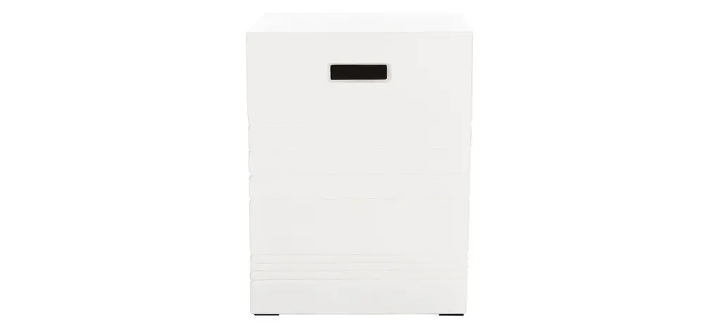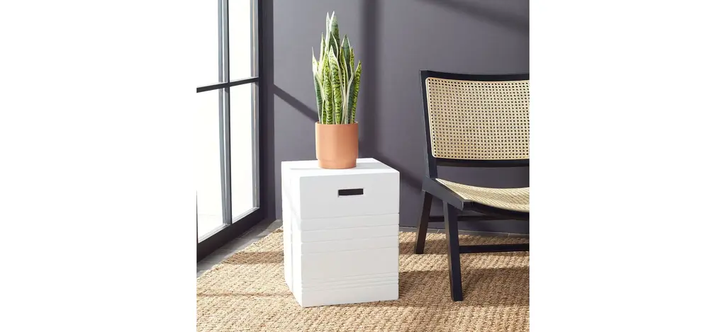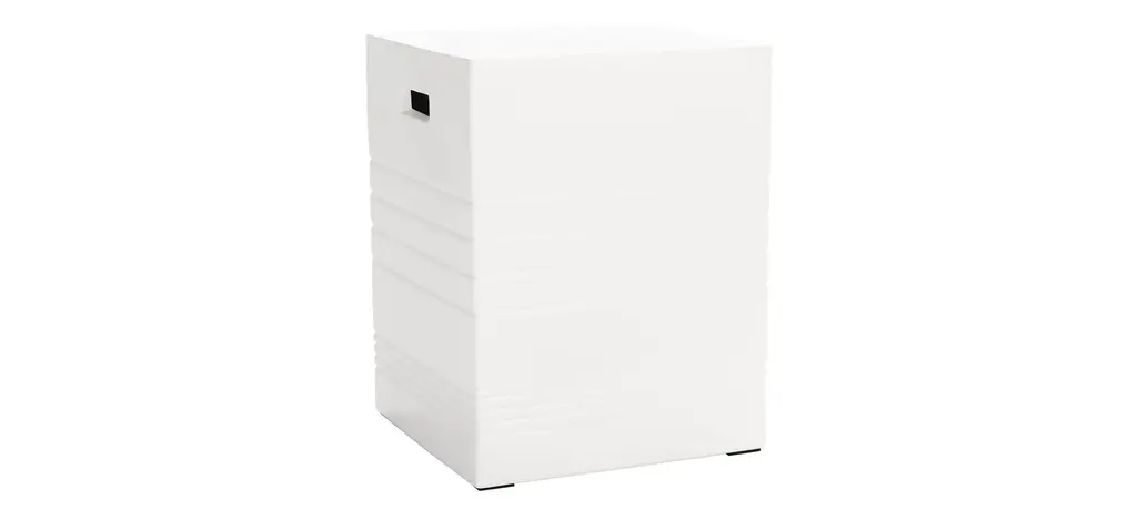Outdoor sculpture for the modern minimalist, this Monterey accent stool makes a bold decorative statement. Monterey's etched bands and rectangular cut-out bring unique visual intrigue to its ivory concrete profile, making it a designer favorite in contemporary Zen gardens.