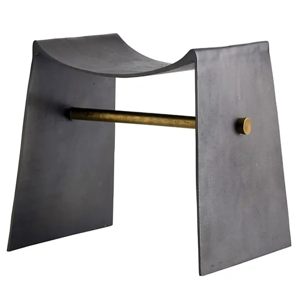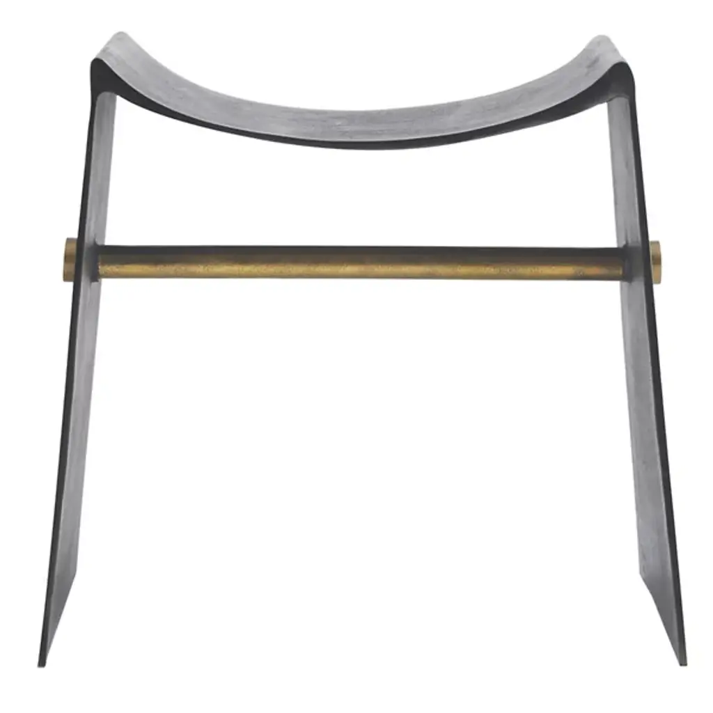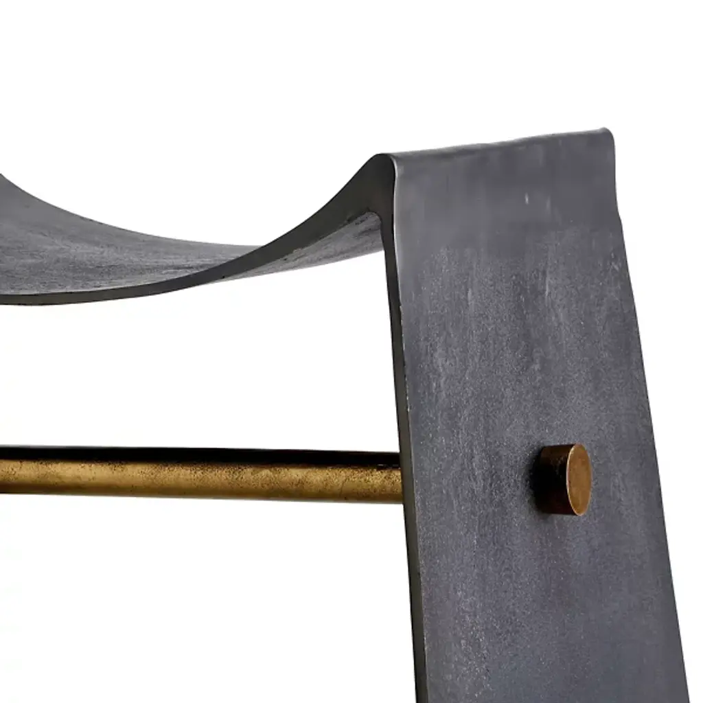 Presented by Arteriors, an elevated utilitarian style gives the Montez Stool an aesthetic edge. Made in India, the design has been influenced by the hallmarks of industrial style, featuring a blackened iron sling-style seat that fluidly flows into the sled-like legging. There is a crossbar for structural reinforcement in a contrasting metallic finish. Whether brought in as a solo piece or in multiples, this artisan-made furnishing provides an elevated aesthetic to locales of choice.