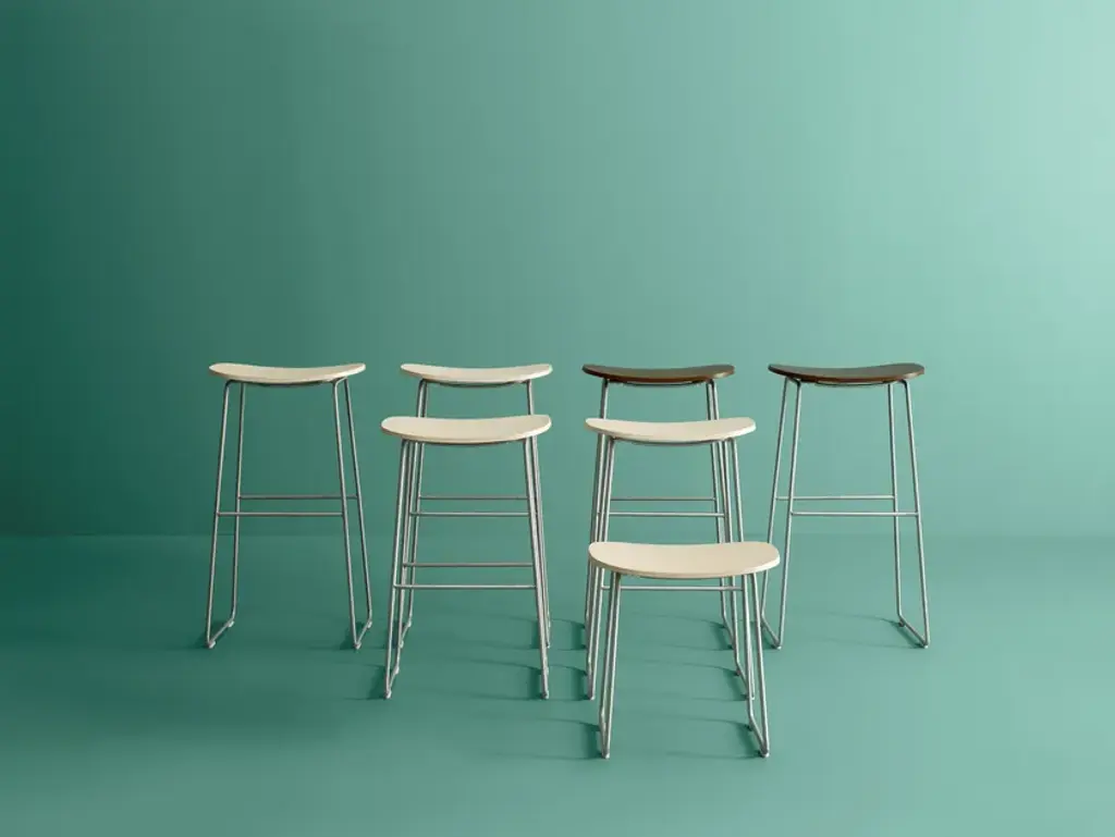 Available in three different heights, the Morrison stool by Jasper Morrison has a slightly concave seat that is a harmonious contrast to the straight, well-defined lines of the base: a detail that is an eloquent representation of the designer’s distinctive style.Suitable for diverse settings, from cafés to restaurants or informal lounges, the seat of this stool is available in ash wood with a bleached, black-stained or wengé finish. Alternatively, it can be padded with polyurethane foam with fixed upholstery in a selection of fabrics or leathers in the collection. The base is made of stainless steel with either a satined or matte-lacquered finish, in white, mud or anthracite.Seat finish: 113 bleached ash, 115 wengé-stained ash, 112 black-stained ashUpholstered seat: inside in beech plywood and birch covered with multi-density polyurethane foamCover: fixed in fabric, leather G, leather Extra G2Base finish: - 435 satined stainless steel- matt varnished: 01 white, 48 anthracite, 71 mudFeet: grey polypropyleneNoteIn the fabric version, the profile is closed with a piping in the same materialIn the leather version, the profile is varnished with black paint