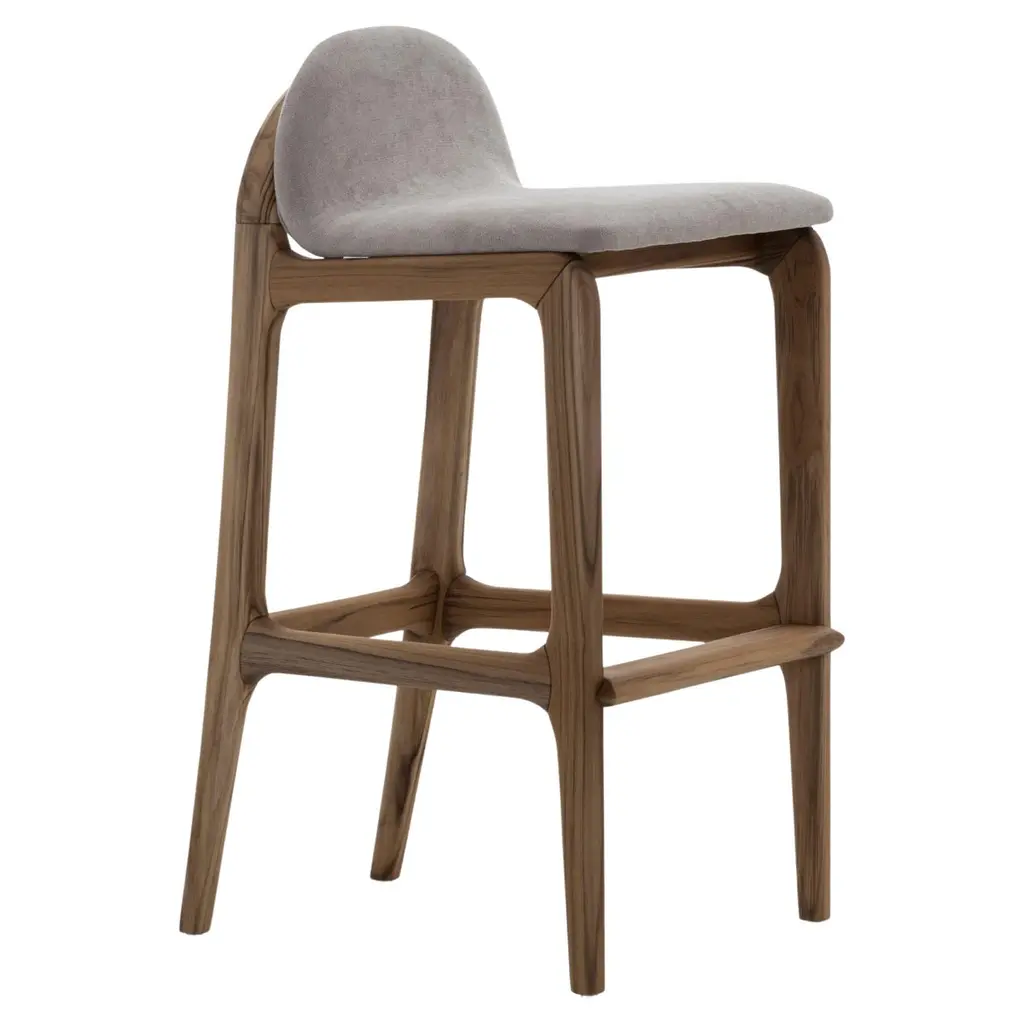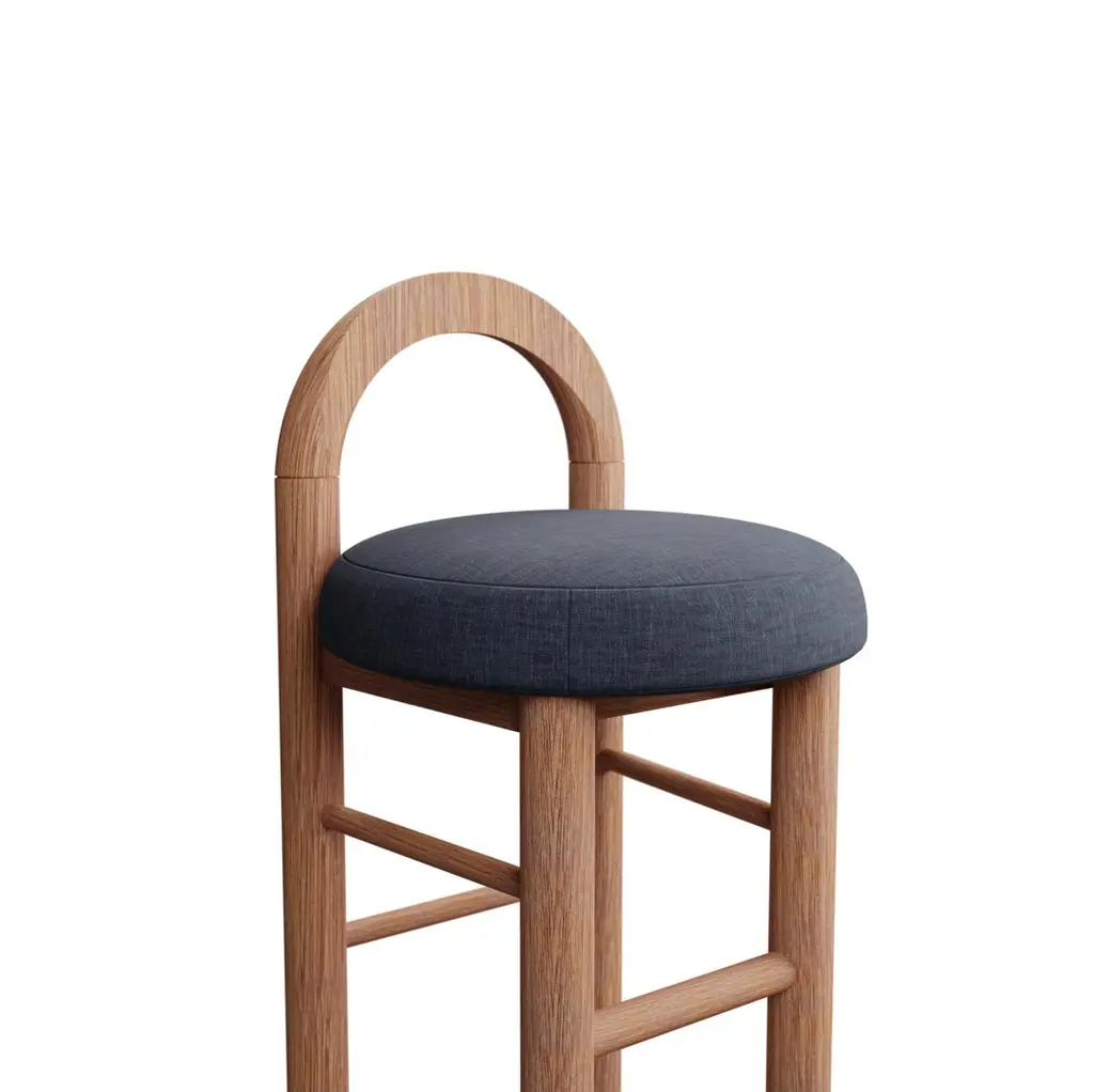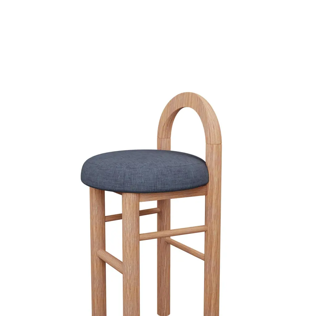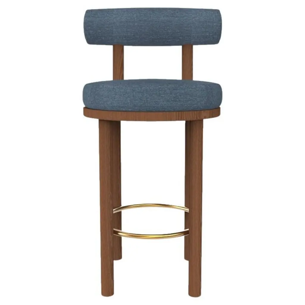 Moss Kitchen Stool U In Denim Plain Weave Fabric Handcrafted By Murmurio