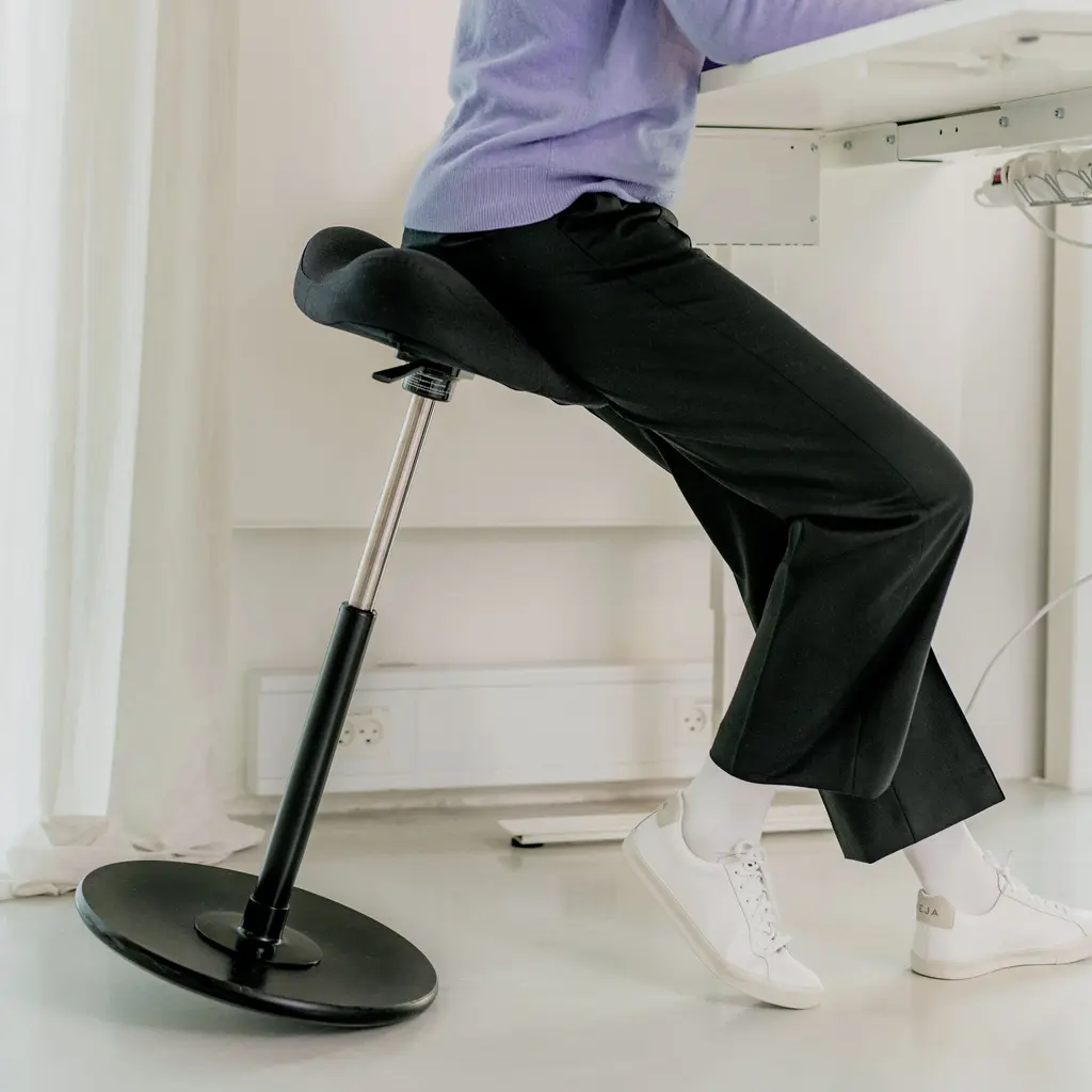Create the perfect home office with the Move Stool from the Varier collection. Designed in 1985 by Norwegian designer Per Øie, the stool allows for a wide range of movement and enables users to easily switch from sitting to almost standing. Ideal for both traditional desks and standing desks, this sit-stand stool helps you boost your productivity while also assisting you in improving your posture. Made in Germany, the gas lift mechanism moves the seat smoothly up and down as needed. Sculpted in an ergonomic shape, the foam seat provides perfect support, regardless of the sitting position. The circular base is made from beech plywood with a manually sanded ash veneer and features a water-based lacquer coating. On the seat, the Kvadrat textile is not only soft and durable, but also eco-friendly as it’s manufactured from 100% post-consumer recycled polyester.