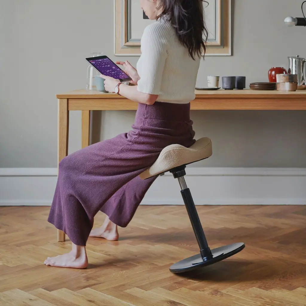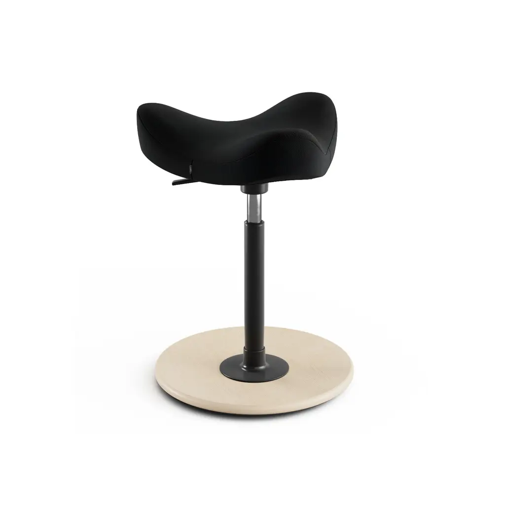 Create the perfect home office with the Move Stool from the Varier collection. Designed in 1985 by Norwegian designer Per Øie, the stool allows for a wide range of movement and enables users to easily switch from sitting to almost standing. Ideal for both traditional desks and standing desks, this sit-stand stool helps you boost your productivity while also assisting you in improving your posture. Made in Germany, the gas lift mechanism moves the seat smoothly up and down as needed. Sculpted in an ergonomic shape, the foam seat provides perfect support, regardless of the sitting position. The circular base is made from beech plywood with a manually sanded ash veneer and features a water-based lacquer coating. On the seat, the Kvadrat textile is not only soft and durable, but also eco-friendly as it’s manufactured from 100% post-consumer recycled polyester.