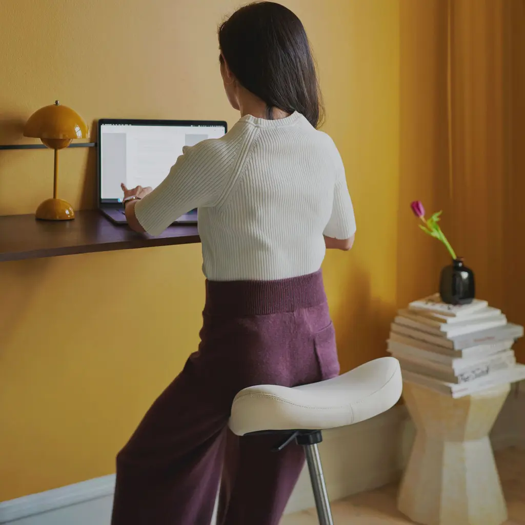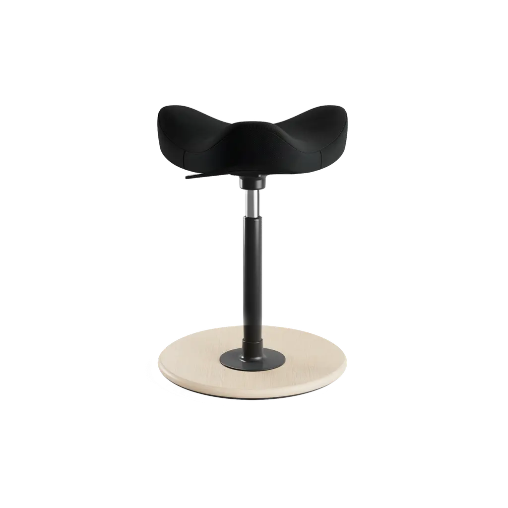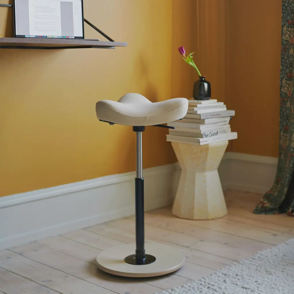 Create the perfect home office with the Move Stool from the Varier collection. Designed in 1985 by Norwegian designer Per Øie, the stool allows for a wide range of movement and enables users to easily switch from sitting to almost standing. Ideal for both traditional desks and standing desks, this sit-stand stool helps you boost your productivity while also assisting you in improving your posture. Made in Germany, the gas lift mechanism moves the seat smoothly up and down as needed. Sculpted in an ergonomic shape, the foam seat provides perfect support, regardless of the sitting position. The circular base is made from beech plywood with a manually sanded ash veneer and features a water-based lacquer coating. On the seat, the Kvadrat textile is not only soft and durable, but also eco-friendly as it’s manufactured from 100% post-consumer recycled polyester.