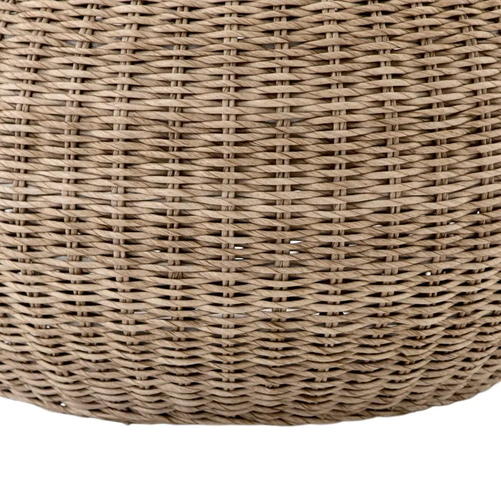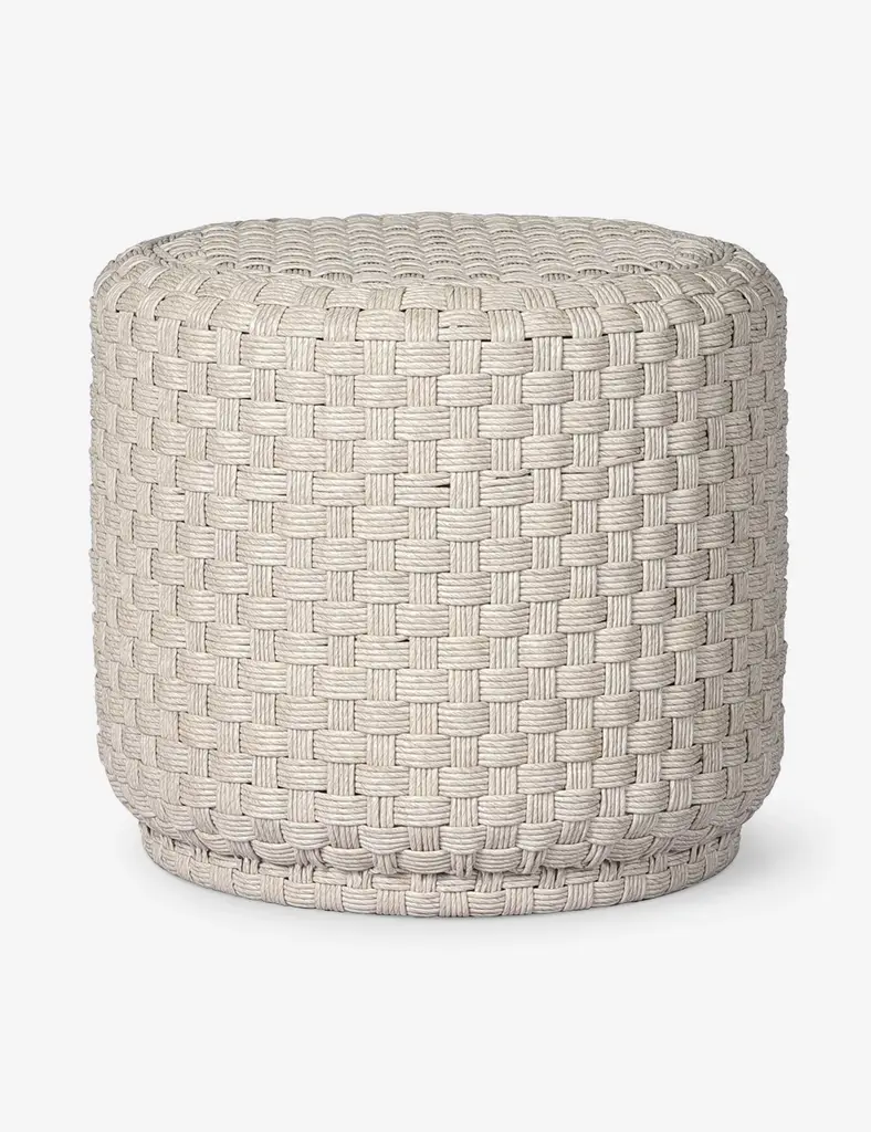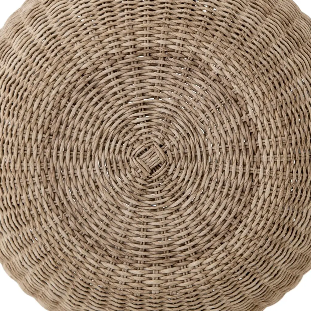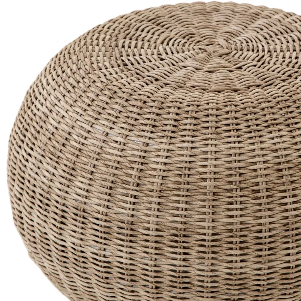 A stylish and practical addition to the porch, patio, or deck, this synthetic wicker-wrapped stool is framed in aluminum with a shapely silhouette and natural finish.