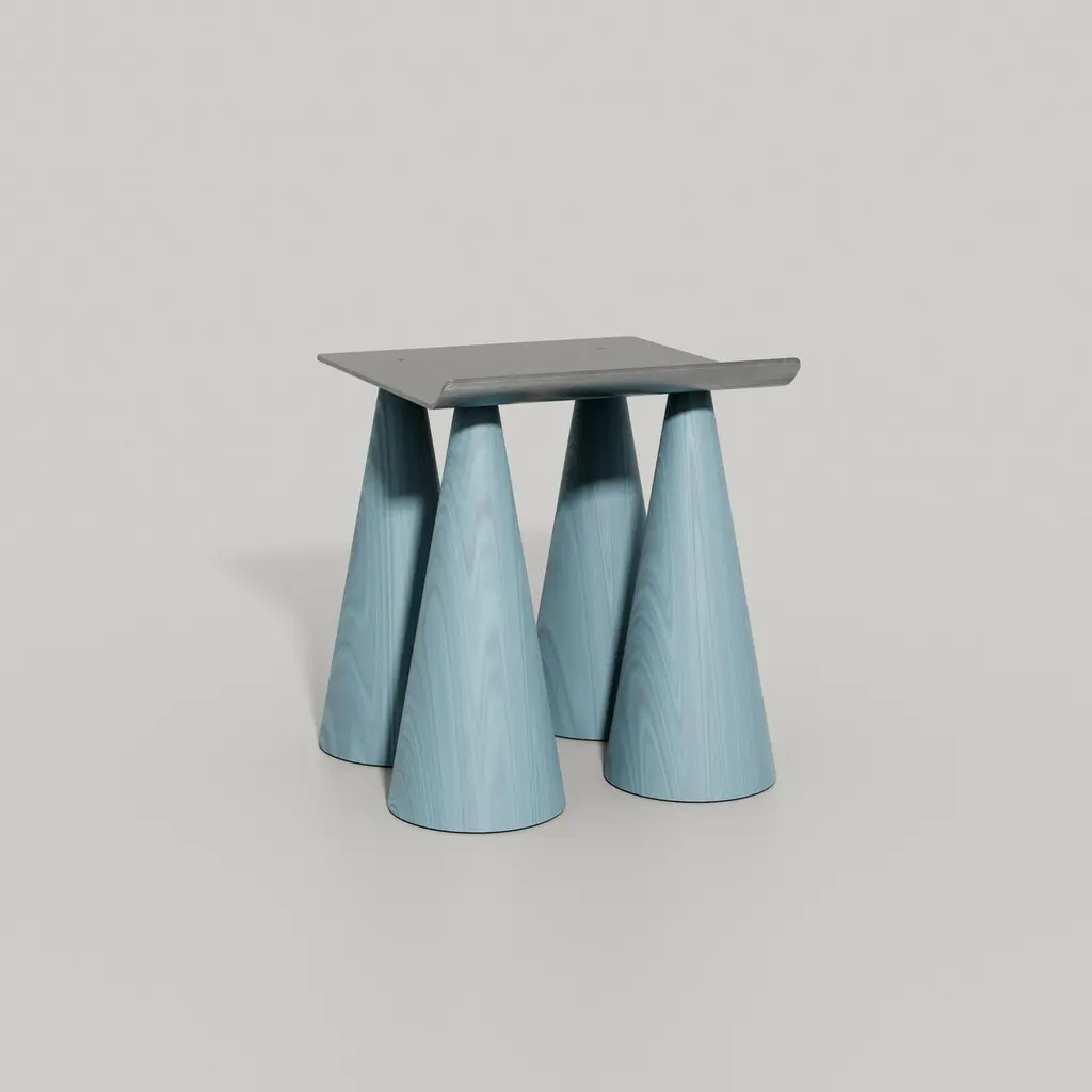 “N2 Cena” Contemporary Stool, Sky-Blue Wood And Aluminium, By Donó Design