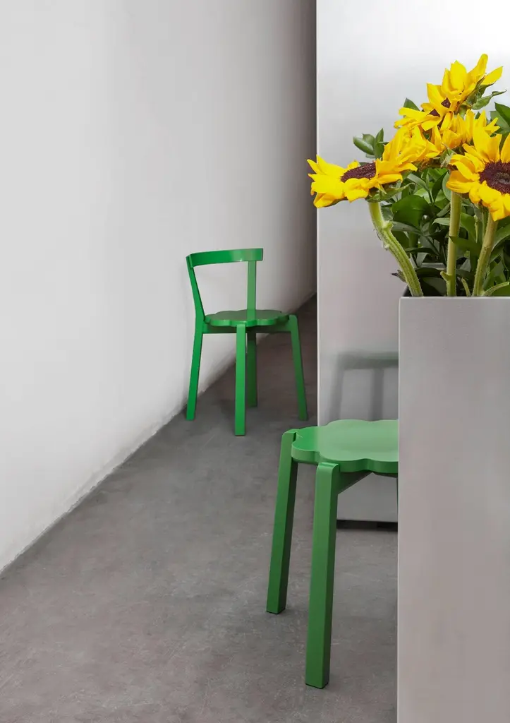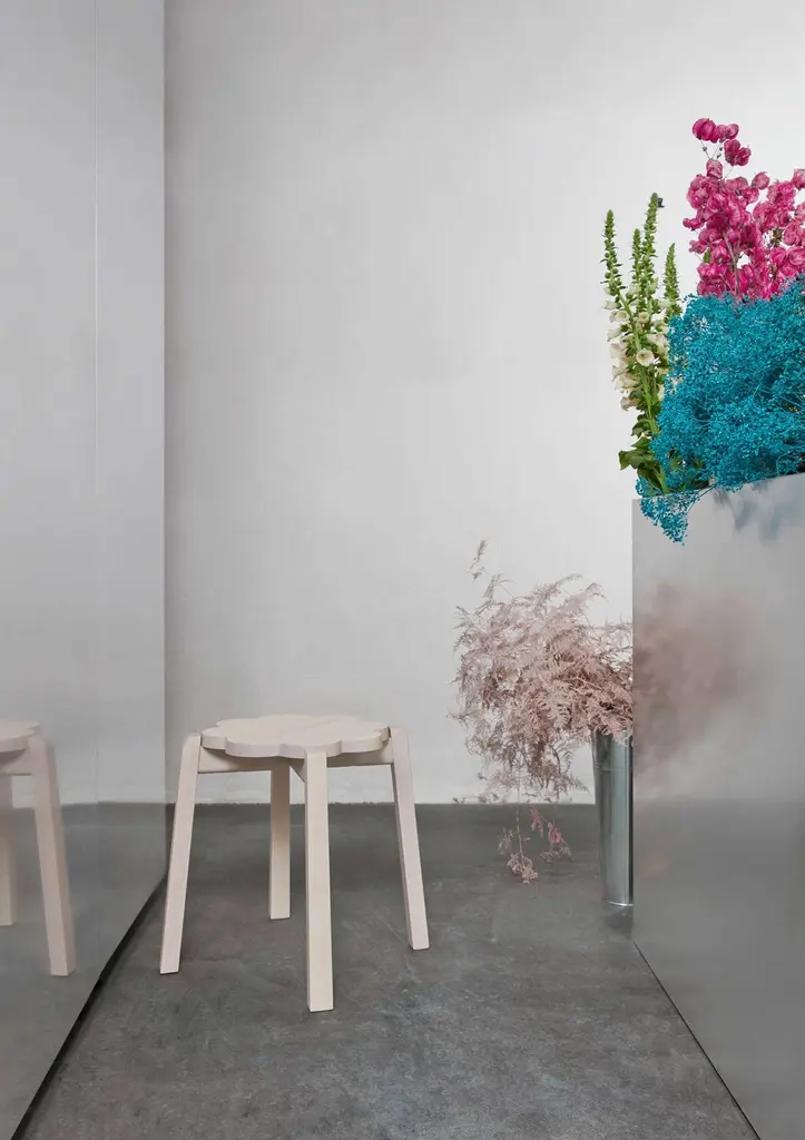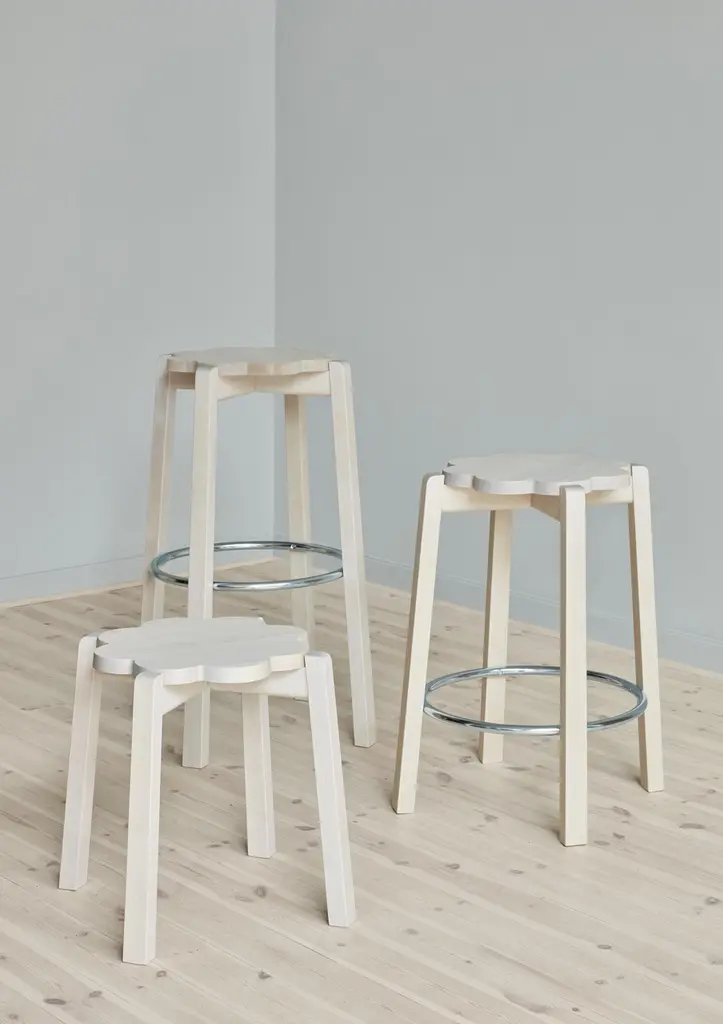 Natural Blossom stool by Storängen DesignDimensions: D 41 x W 41 x H 45 cmMaterials: birch wood.Available in other colors and sizes.A small and neat stackable chair, which works well round tables in cafes and living rooms.A clean construction of solid birch combined with a laminated veneer backrest and a floral seat. Blossom is avalible in 3 different heights and with or without backrest depending on your need.Storängen DesignIn early 2017 Mårten Cyrén and Torbjörn Källberg established Storängen Company – an idea 15 years in the making.In the fall of 2020 Mårtens son Carl replaced Torbjörn as CEO and co-owner. Together they continue to collaborate with a well-established network of designers, craftsmen and makers, and further develop a portfolio of furniture based on timeless ideals and modern Scandinavian design.Such as Storängen. A bold and charismatic offspring of the classic Windsor chair with uncompromising functionality and craftsmanship. The product that gave the company its name and with it came a simple idea: creating a direct and honest link between the craftsmen making the furniture, and the professional and private buyers they were intended for.Storängen furniture is sustainably sourced, classically designed and manufactured with a combination of traditional skills and modern techniques. It is furniture to last a life-time.