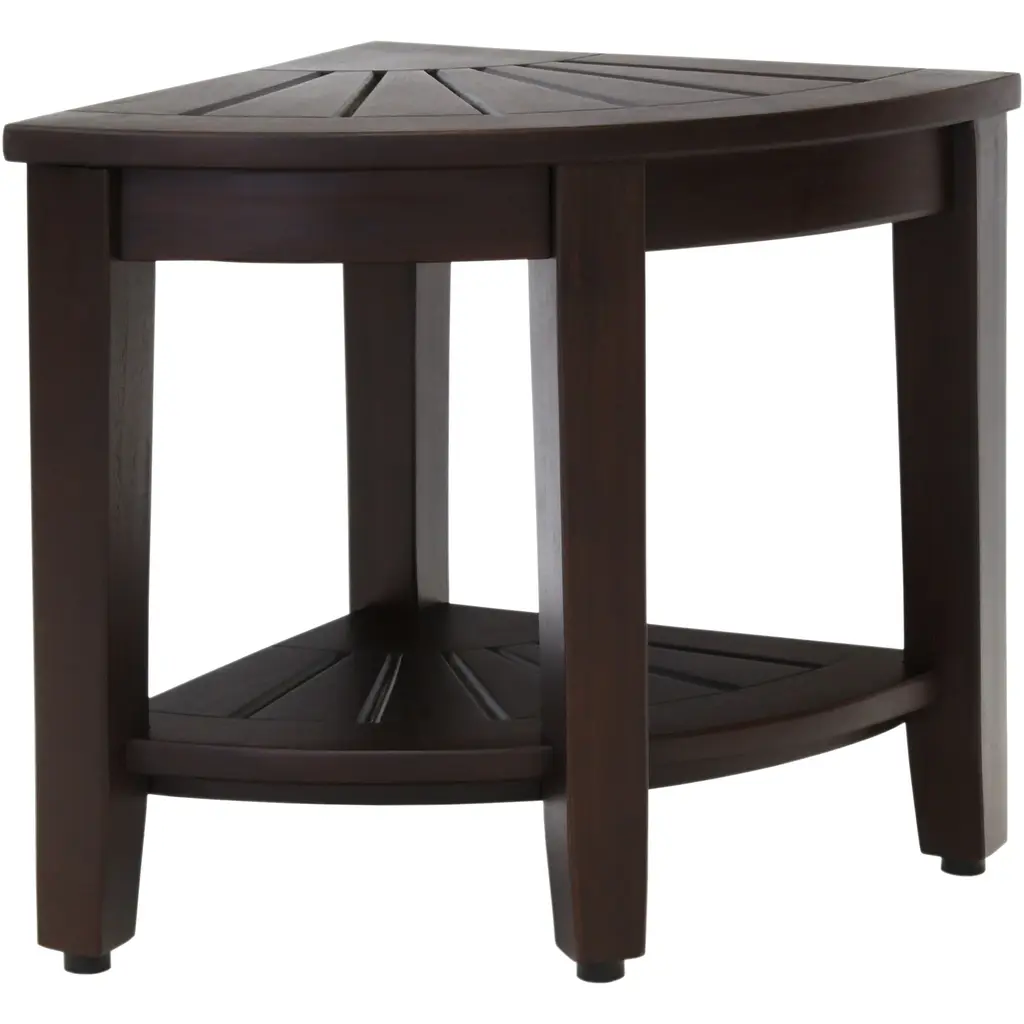 Natural Teak Corner Shower Stool 2-Tier Storage Waterproof Wooden Seat - 15.5" X 15.5" X 17.5" - Natural