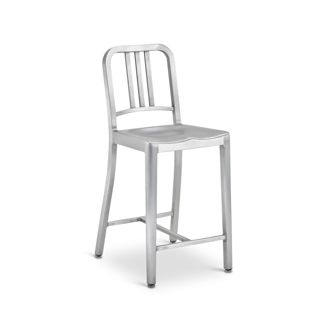 Experience timeless elegance and superior craftsmanship with the Navy Stool from Emeco. Originally designed for use on submarines in 1944, this stool version of a modern furniture classic boasts a legendary 77-step process and is hand-formed from recycled aluminum. Its classic anodized finish makes it a durable and stylish addition to any space, while its optional seat pads provide additional comfort and a hint of contrasting color. Highlights