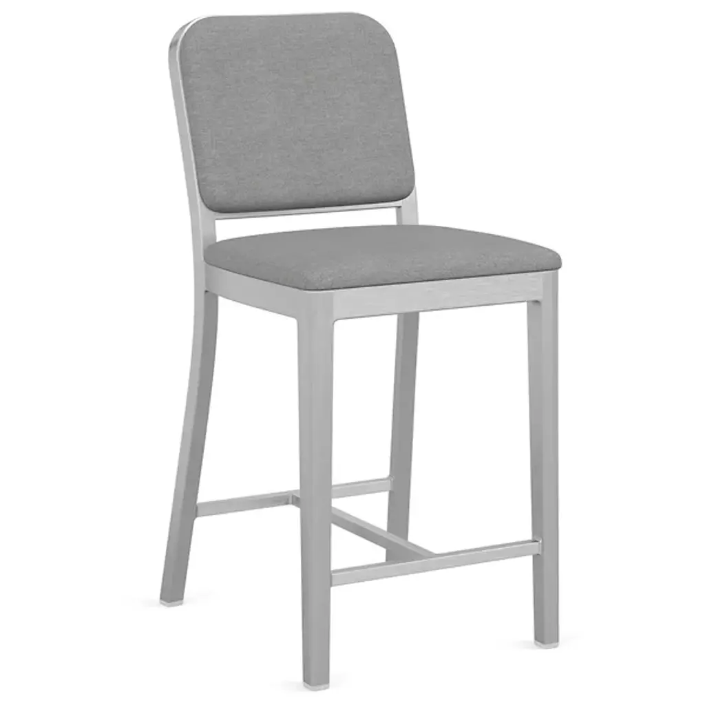 The Navy Officer Stool, designed by Jasper Morrison, combines modern style with classic Emeco durability. Available in two heights and a variety of finishes and upholstery options, this stool is perfect for any space. Built for comfort and lasting appeal, this stool features a sturdy recycled aluminum frame for an eco-friendly design. Highlights
