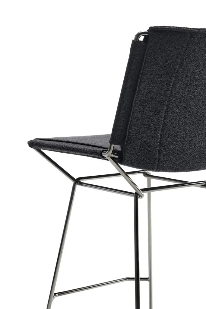 Elegant, light and sophisticated: Neil Textile Chair and Stool are the natural evolution of Neil, the icon of essential style created by Jean Marie Massaud.The fabric tailoring, 100% made in Italy, is a symbol of the quality and exceptional skills of our manufacturing sector. Design and traditional craftsmanship are combined in this product, which can be used in different settings, from the most classic to the most modern and contemporary.StructureThe load-bearing steel frame of the seat and backrest is available in black chrome glossy galvanic finish or in matt white or lead black colour powder painted.UpholsteryThe fabric upholstery, coupled and simply stretched on the frame, is characterized by riveted seams and colour matching aesthetic stitching on the seat and back, decorations that emphasise the tension and the pattern.The upholstery fabric is removable. FabricsCat. B EtisCat. C AnimaCat. D NaturaCat. F Londra / ParigiCat. G Hero 2 / Sunday / MossThis product is only suitable for indoor use.