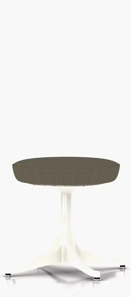 George Nelson's Pedestal Stool (1954) fits well in casual spaces that require easy-to-rearrange seating. It features the designer's signature clean lines and elegant simplicity and an upholstered seat pad that echoes Nelson's iconic Marshmallow Sofa. Eco-friendly as it is sightly, its polyester upholstery is devoid of antimony, a known industrial pollutant. Self-leveling glides adjust to uneven floor surfaces. This is the authentic Nelson Pedestal Stool produced by Herman Miller.
