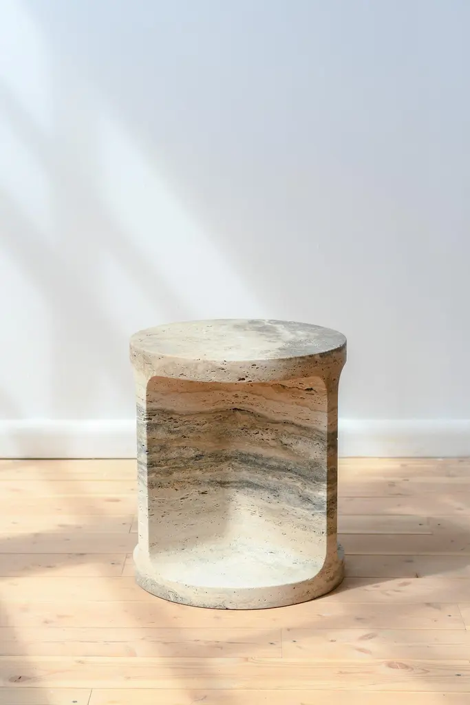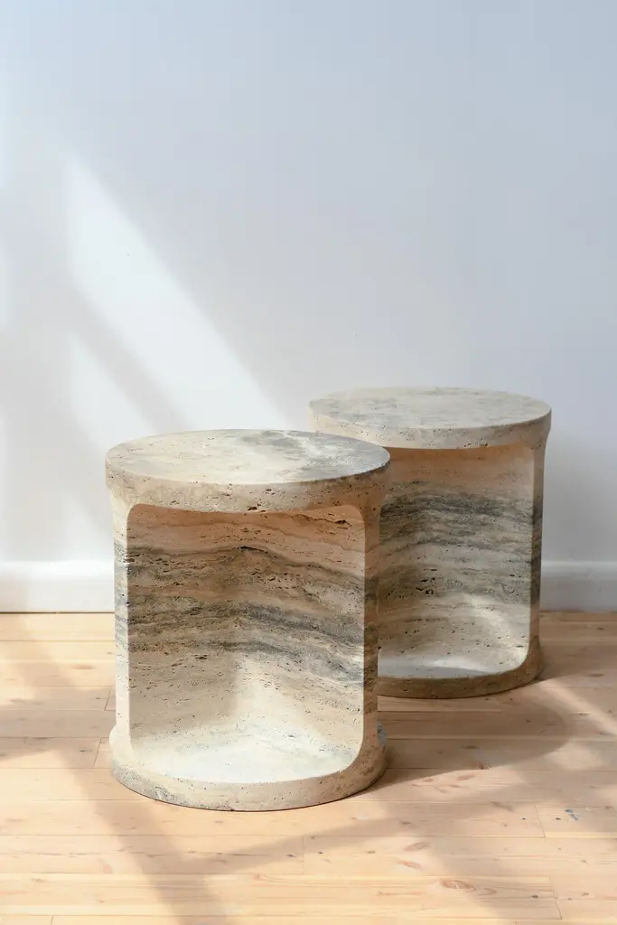 Neolith Stool And Side Table In Silver Travertine By Jeff Martin Joinery