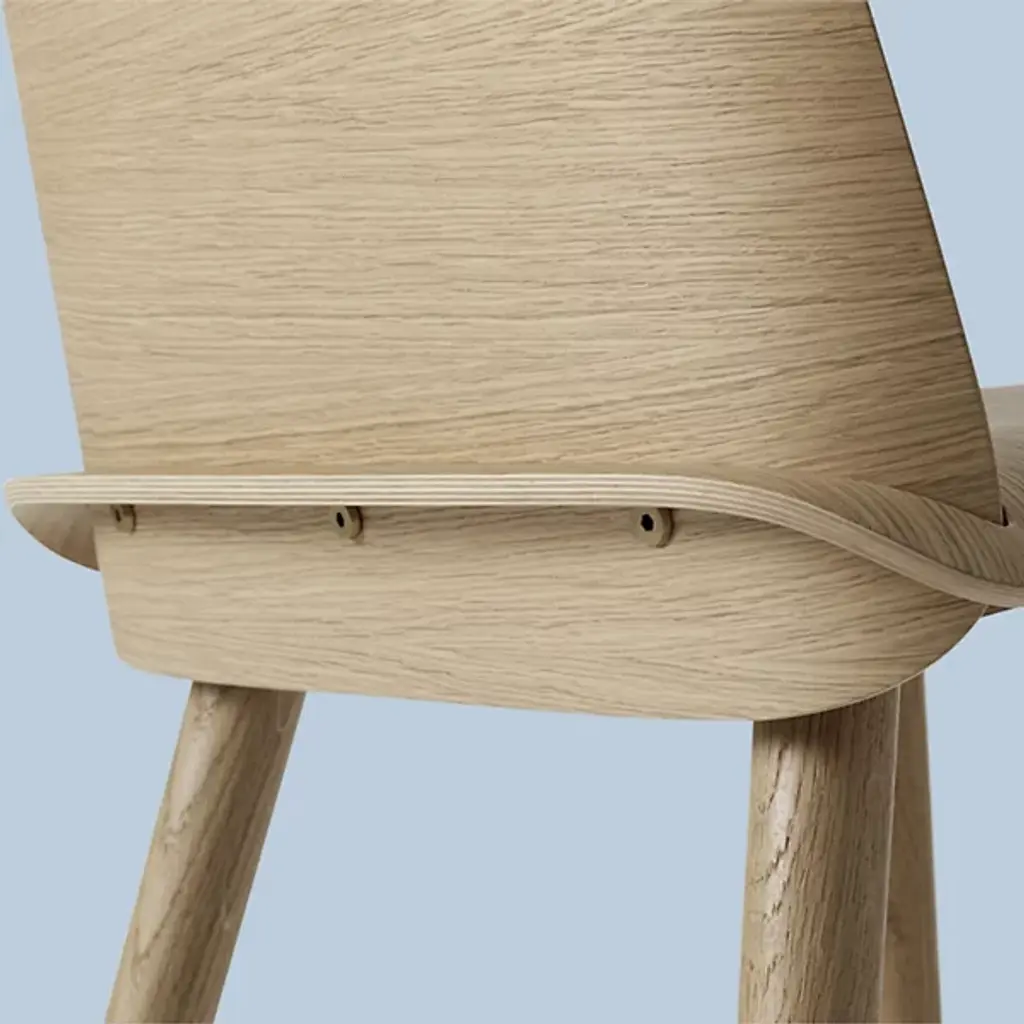 Bring a sleek Scandanavian presence to your tall tables or breakfast bars with the Nerd Stool from Muuto. An elegant wooden chair that rises from four tapering legs, each braced by a horizontal crossbar, it uses a smooth convex seat accented by a short, slightly angled back to provide steady, comfortable seating. The seat sits atop a set of plastic glides allowing easy repositioning, while its subdued, stylish design ensures it does not overpower its surroundings.