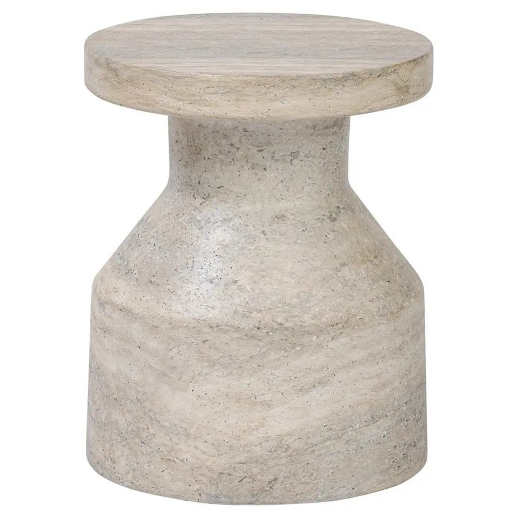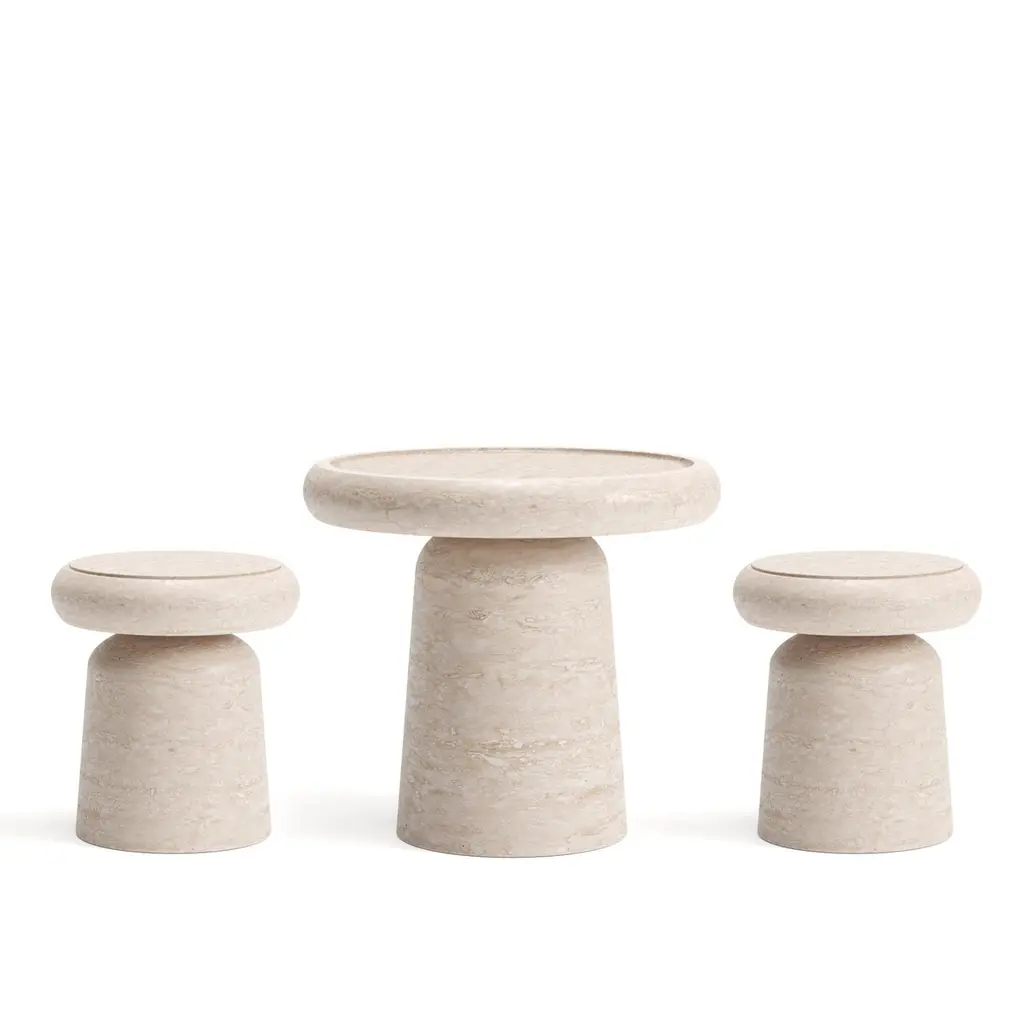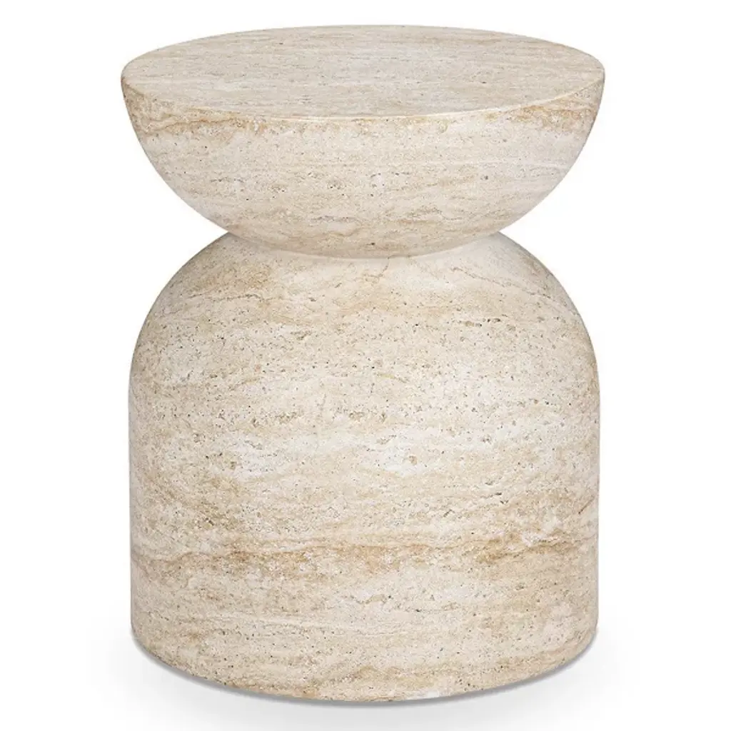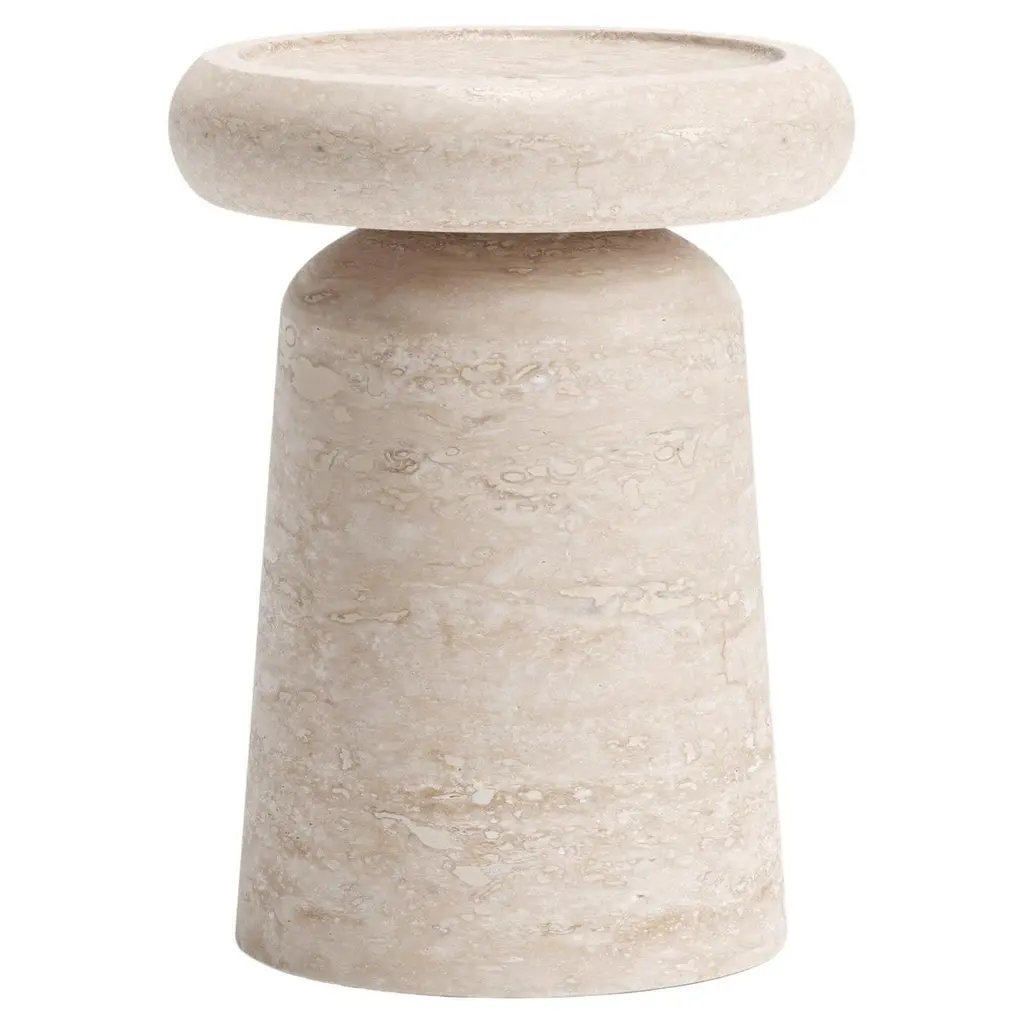 Stool/Side table in TravertineSize: ⌀ 37 x 40 cm. - 14.6 x 15.7 in.Commercial name: Nissa Stool/Side Table in Travertine, Nissa Collection by the Spanish designer Ivan Colominas. Made in Italy, hand finished.- other colour versions available: Black Marquinia and White Gioia marbleA journey to the distant land of Nevsehir, a place away from time, in the wild and exotic Cappadocia, where you can lose yourself into an infinite nature, filling your eyes with marvel. The wonder of this exceptional landscape,inspires Ivan Colominas in the creation of a new collection. The memories of the wonderful rocks "Three Beauties", revives in the timeless design of Nissa, an elegant family composed of: dining table, stool, side table and coffee table, where the quality of the material and of the craftsmanship are the essence. With MMairo's endlessly devotion to great design, Nissa Collection will make you dream with different forms and marbles. An exceptional travel into materials and shapes, to personalize your interior with undeniable exquisiteness.