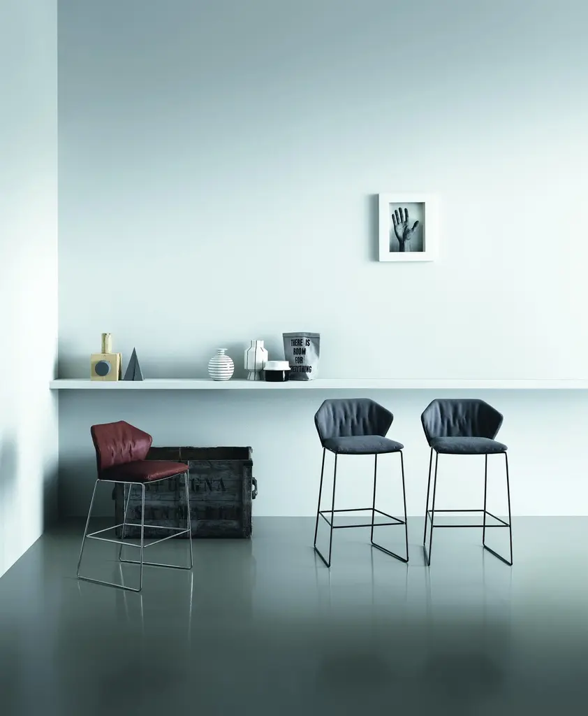 New York, a collection which proudly bears the name of the Big Apple. Two souls, uptown and downtown, enclosed in a single piece whose fully changeable covers reveal its innate versatility. The unusual and polyhedral ergonomics of the New York armchair encourages a personal use of the covers and the two colours, allowing different colour solutions from a single choice. The frame in iron rod comes in many colour and coating finishes. Fully removable covers.Born in 1953 he left formal education and began, almost by chance, his experience in the field of the padded furniture. Fascinated by the world that surrounded him, he eagerly devoted himself to researching building forms and techniques which have borne fruit for the companies in which he worked. In 1991 he opened his studio as an independent designer and in 1993 he came across Saba Italia. New challenges and new incentives lead to the creation of the “nomad sofa”: Taos, Ananta, Limes, Nesting, Pixel. Creations that were born from reflection of new desires that encourage us to live in a less formal way, equipped with systems that enable change with simple gestures, by playing with shapes.Structure: In 11 mm steel rod. The seat is in steel sheet. Glossy chrome or painted finish. Velfodera coating on resin 280gr/sqm.Padding: Seat cushion in 50IP polyurethane foam covered with white cotton on 380gr/sqm polyester fiber.Additional information:Material: Steel, polyurethane foam, upholsteryLeg finish: ChromeUpholstery: Cat. C, Clean A10 - col.05Dimensions: 53 W x 53 D x 90 H cmSeat height: 75 cmAvailable in other upholstery options: E, lusso, extra, top, special, vip, elite, royal, pelle club, pelle florida, pelle masterAvailable in other legs finish options: White, black, copper, black nickel, satin brass, bronze copper matt, bronze gold mattAvailable in other size options: High