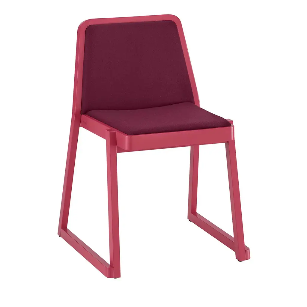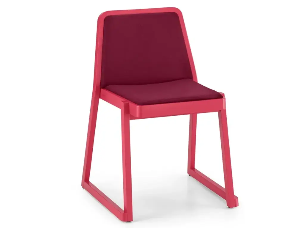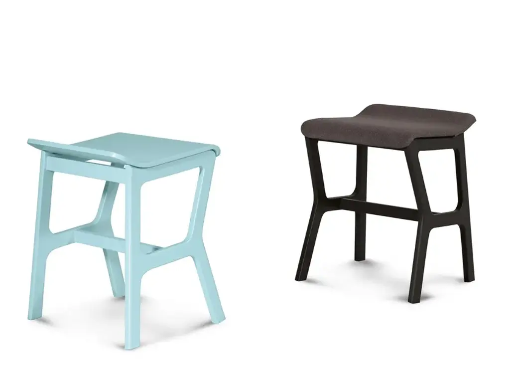 Low beech wood stool with padded seat from the NHINO collection, designed by Emilio Nanni.