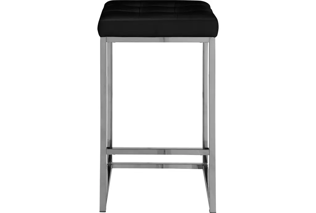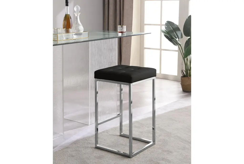 Nicola Black Vegan Faux Leather Upholstered Stool With Chrome Finish Set Of 2