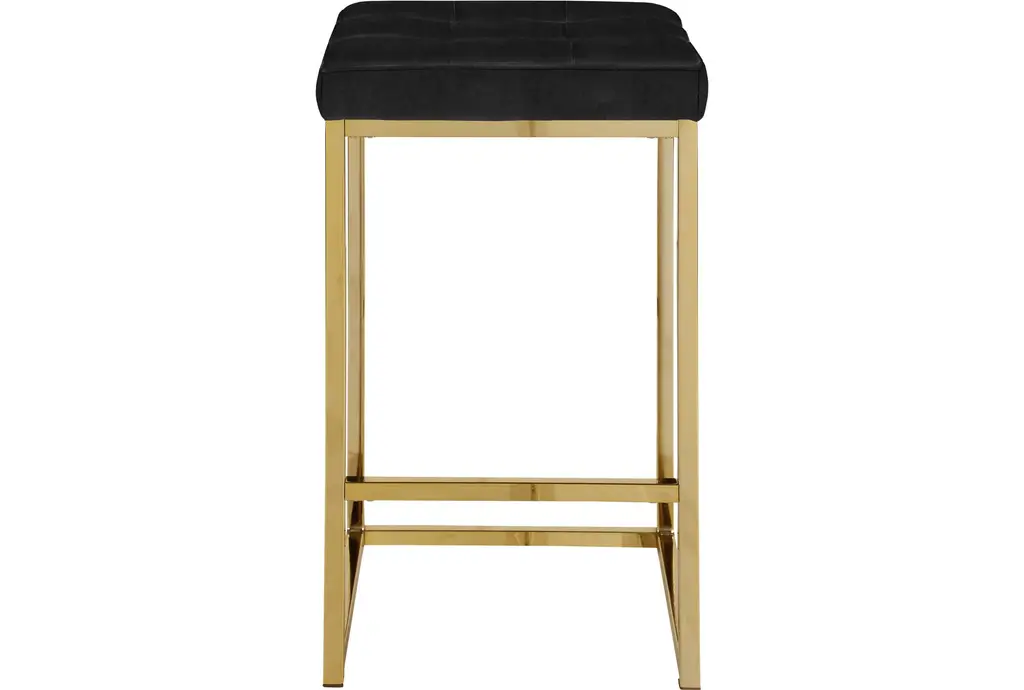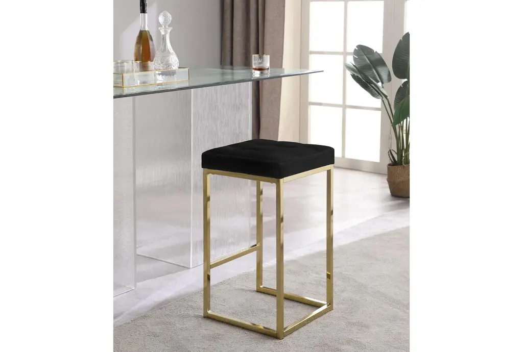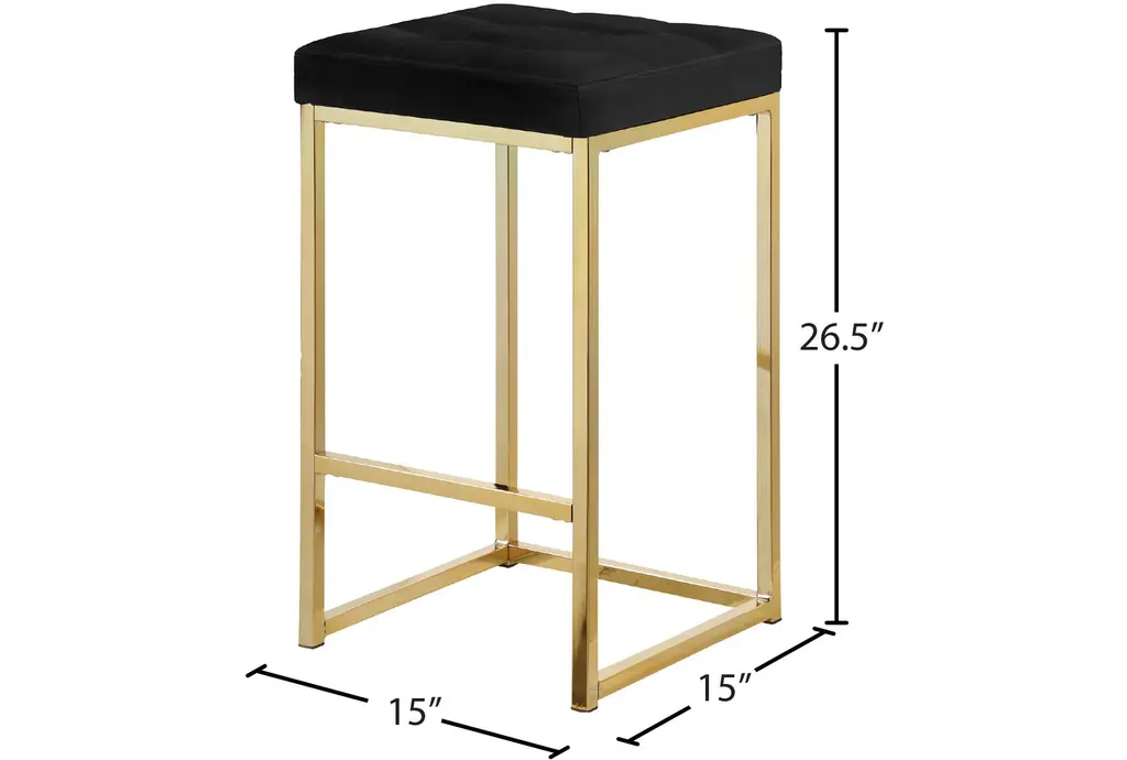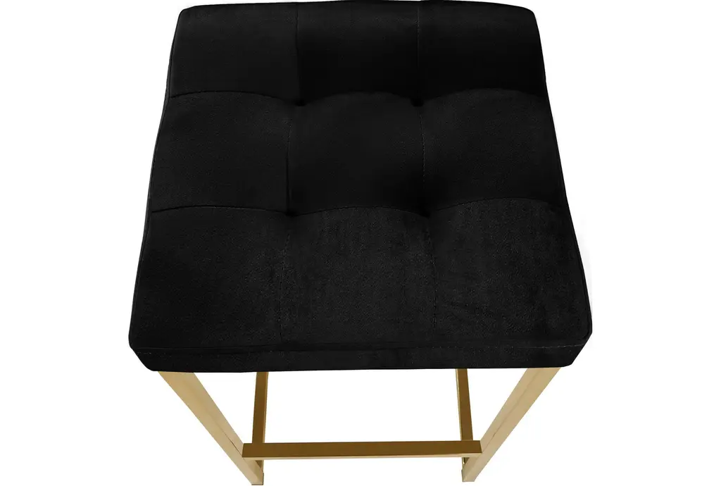 Nicola Black Velvet Upholstered Stool With Gold Finish Set Of 2
