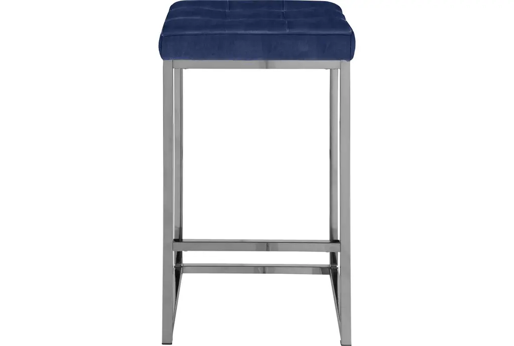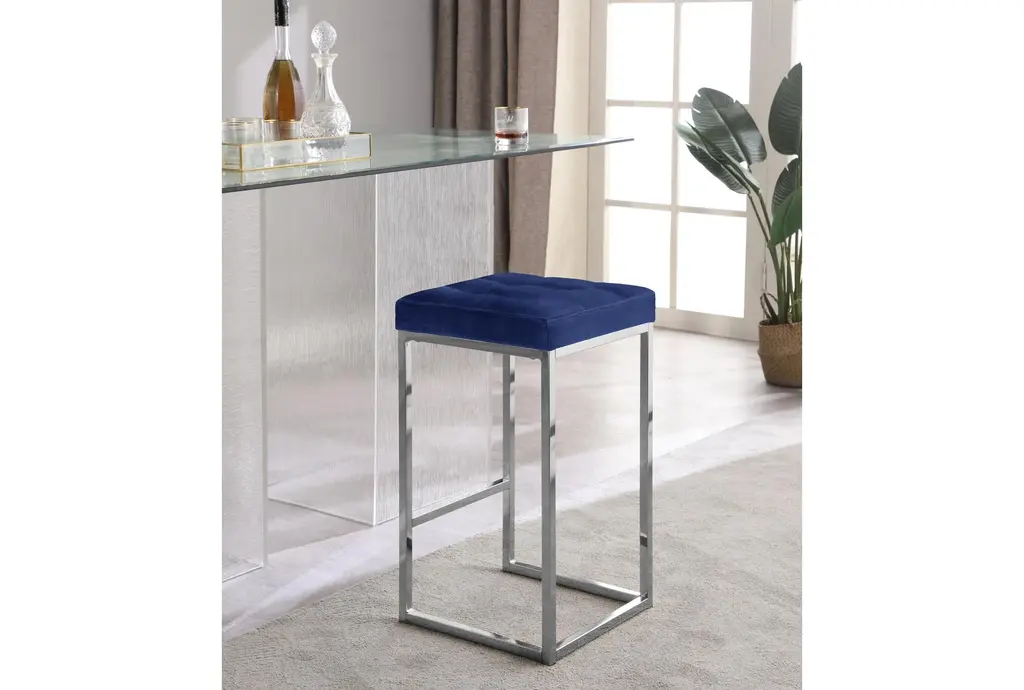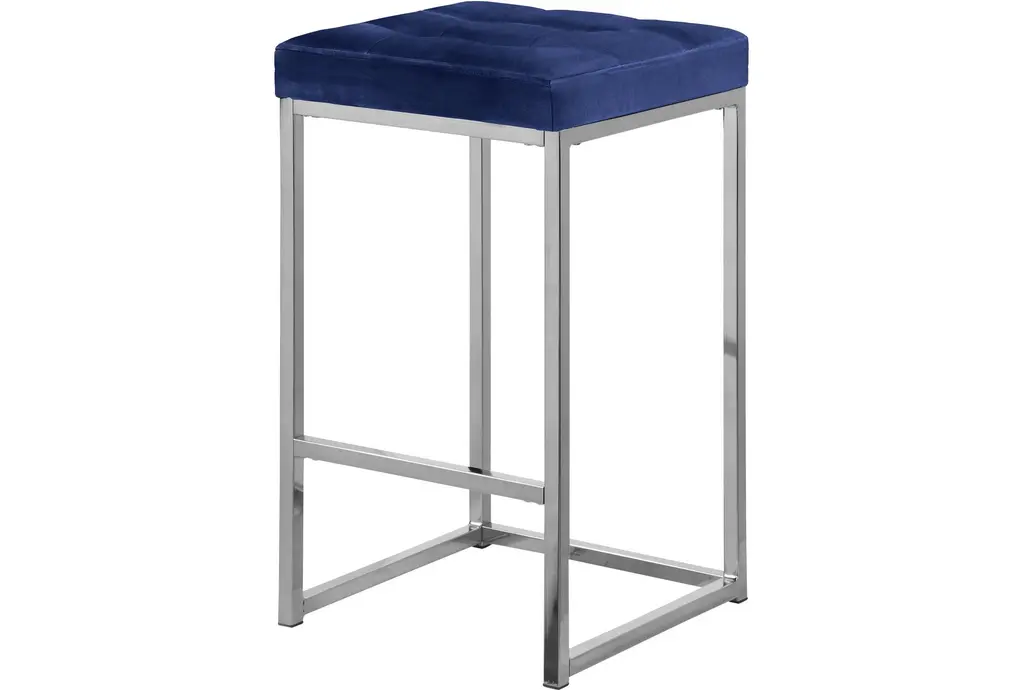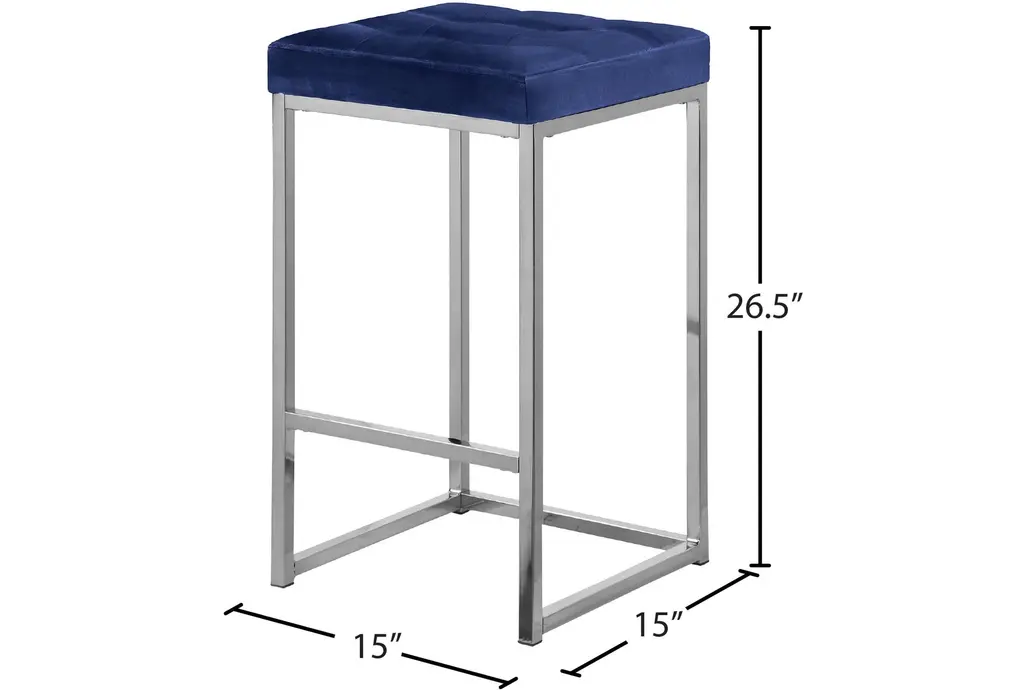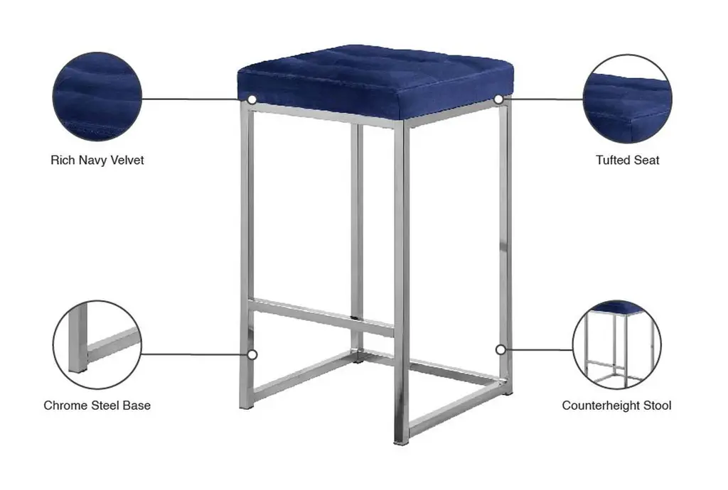 Nicola Navy Velvet Upholstered Stool With Chrome Finish Set Of 2