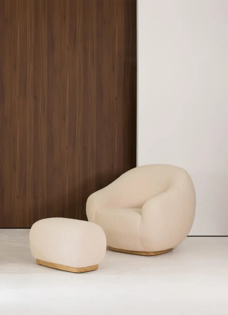 Niemeyer Ii Stool, Bouclé And Oak, Insidherland By Joana Santos Barbosa