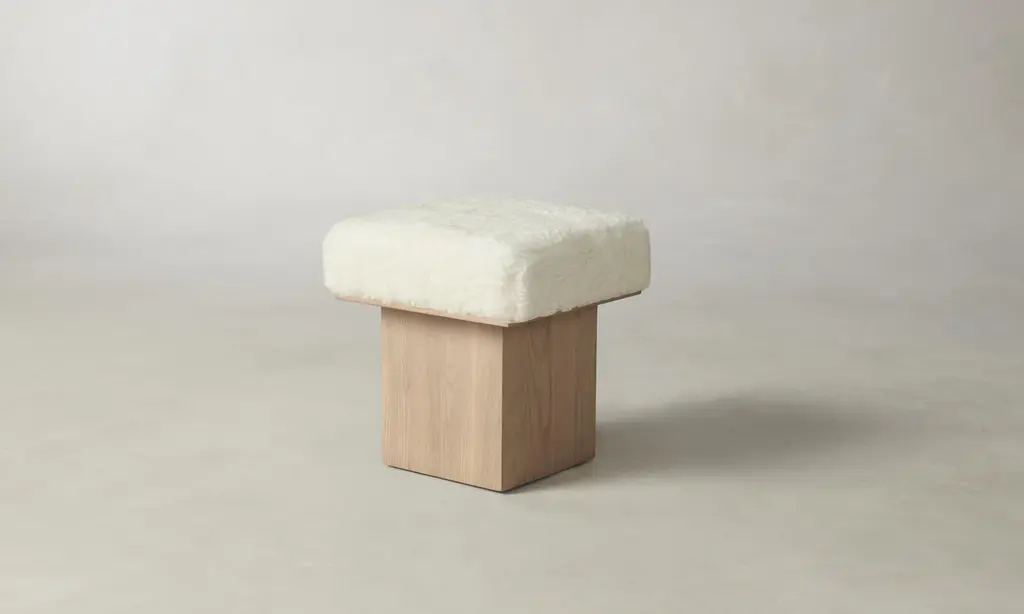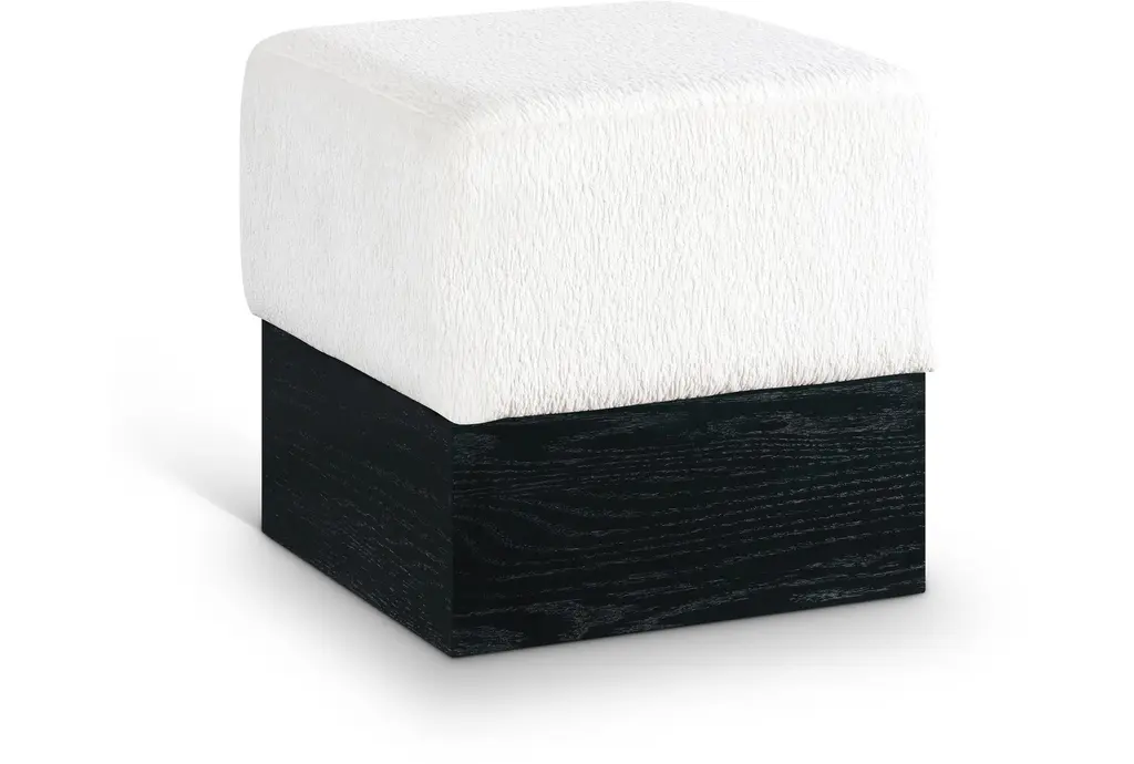Nimes Cream Velour Fur Fabric Ottoman/stool