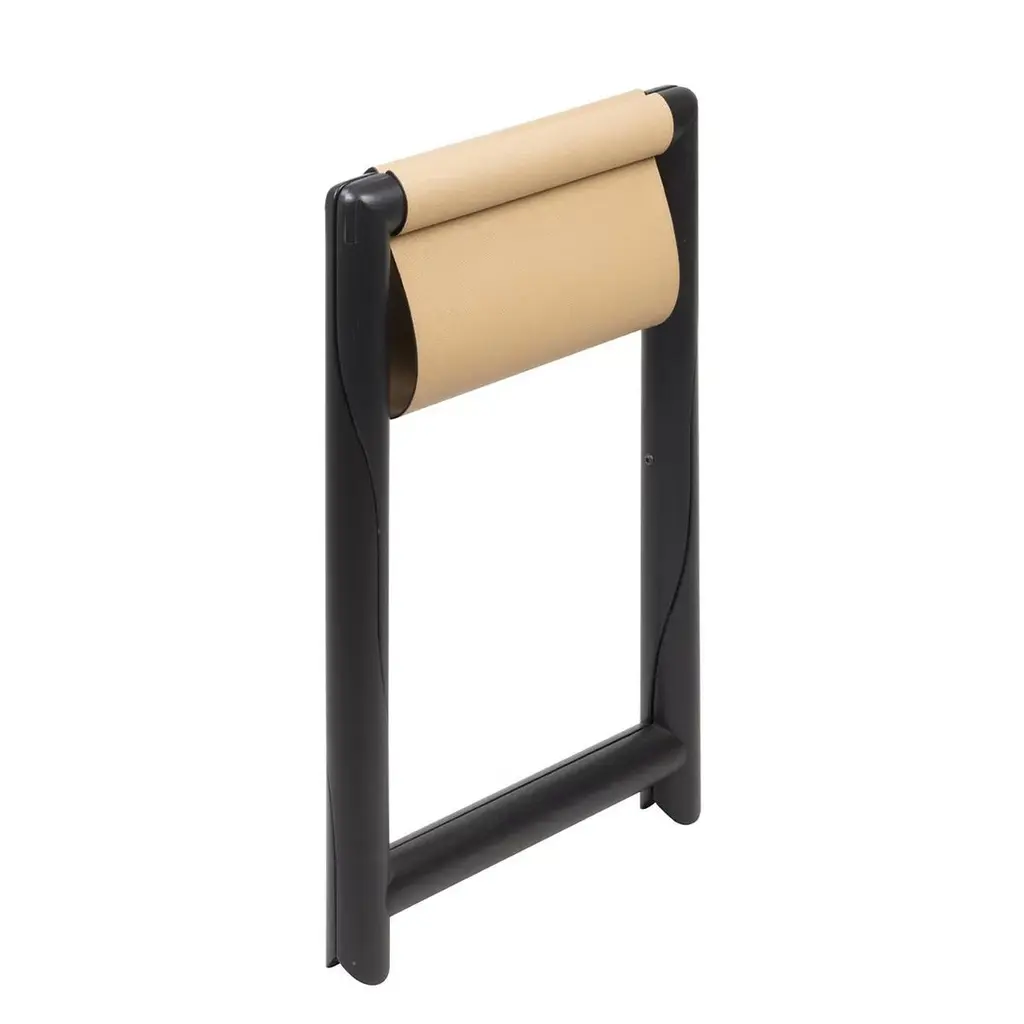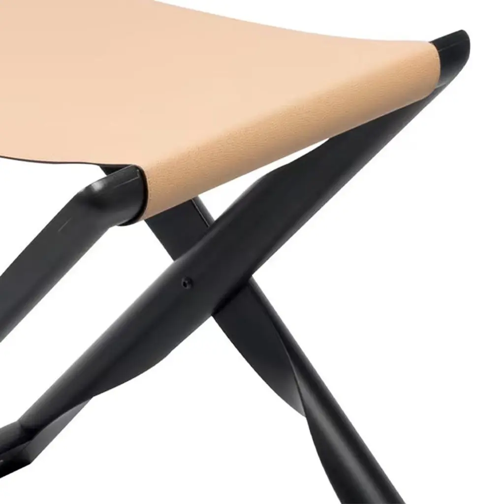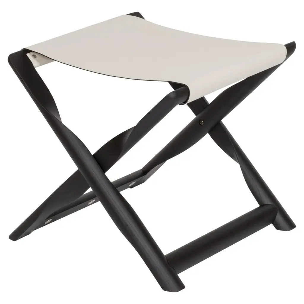 Stool Noble Folding with folding solid oak base in stainedblackened finish. With genuine leather seat in beige finish.Also available with other leather colors finishes, on request.