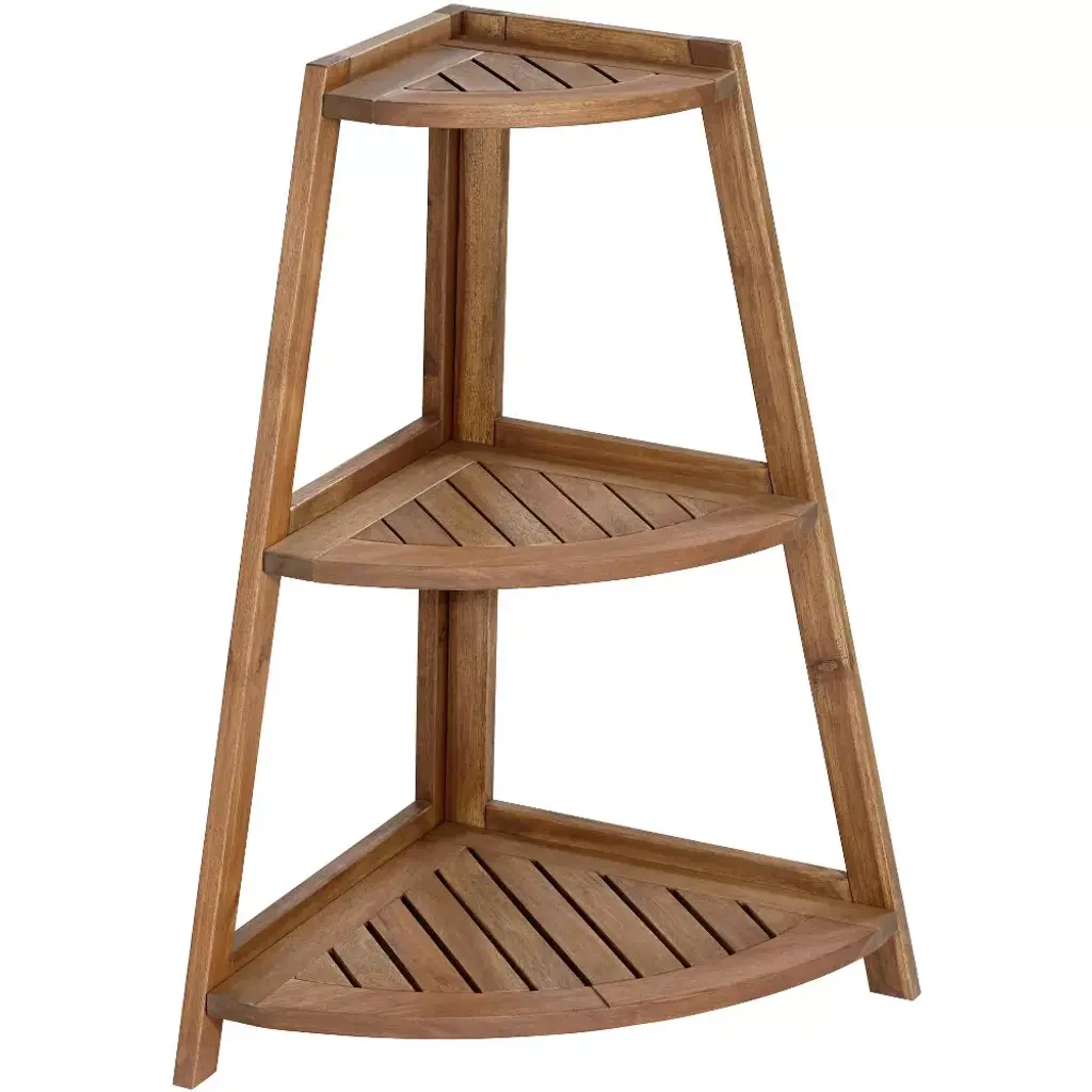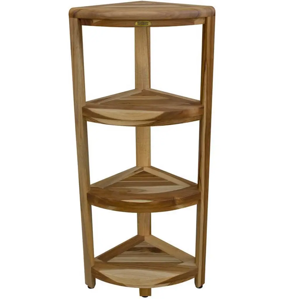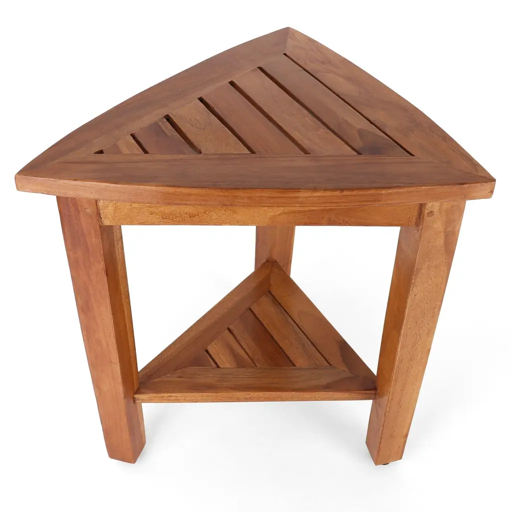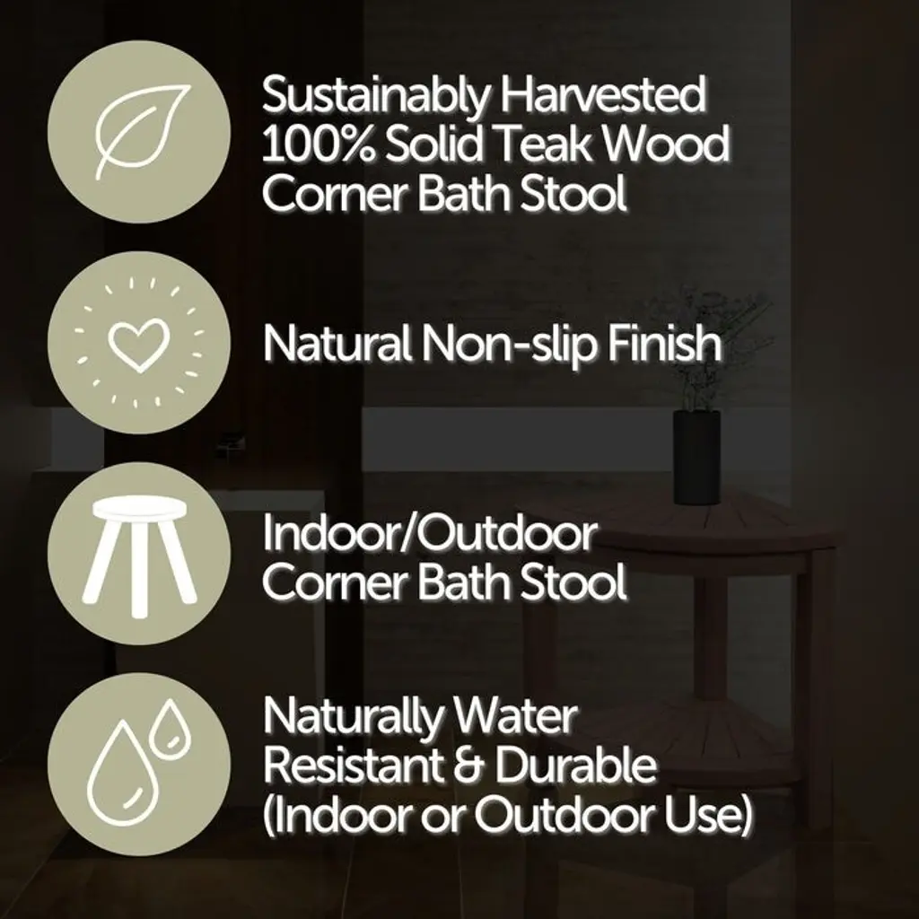 This solid teak corner stool is the perfect addition to your functional décor collection. Teak wood is easy to clean, sturdy, durable and comfortable. The supportive stool allows you to comfortably place or take a moment of rest, lay your towels, shampoos, grooming supplies and just about everything in between (weight capacity is roughly 250lbs). If you happen to run out of space up top, utilize the lower storage shelf.Features: