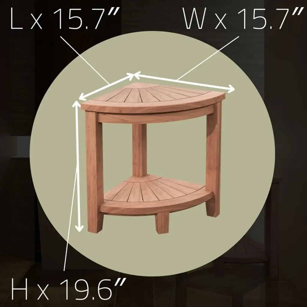 Nordic Style Teak Corner Shower And Bath Stool With Shelf - 15.7" - 15.7′′ L X 15.7′′ W X 19.6′′ H - 15.7′′ L X 15.7′′ W X 19.6′′ H