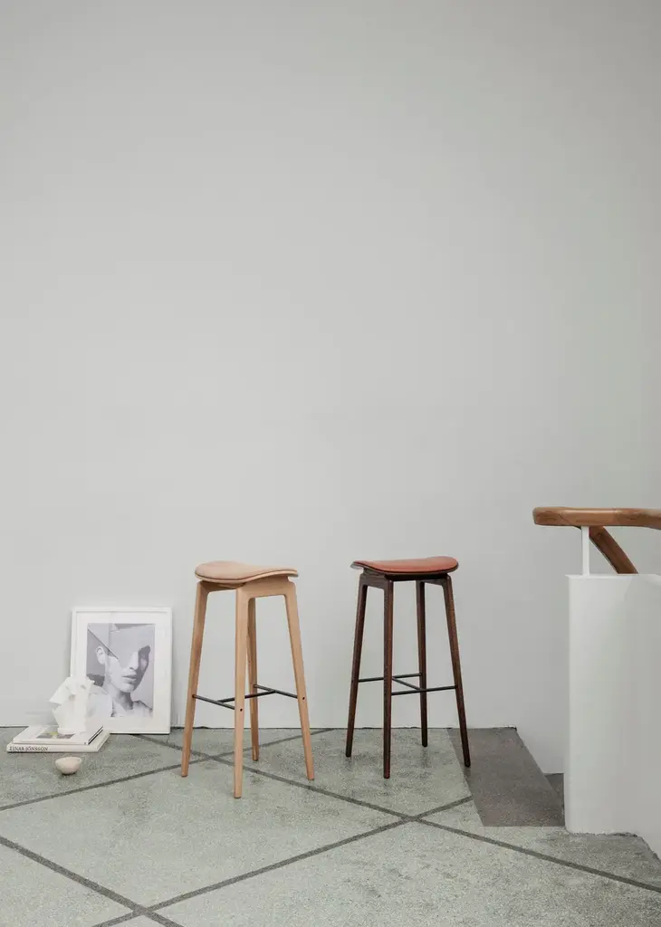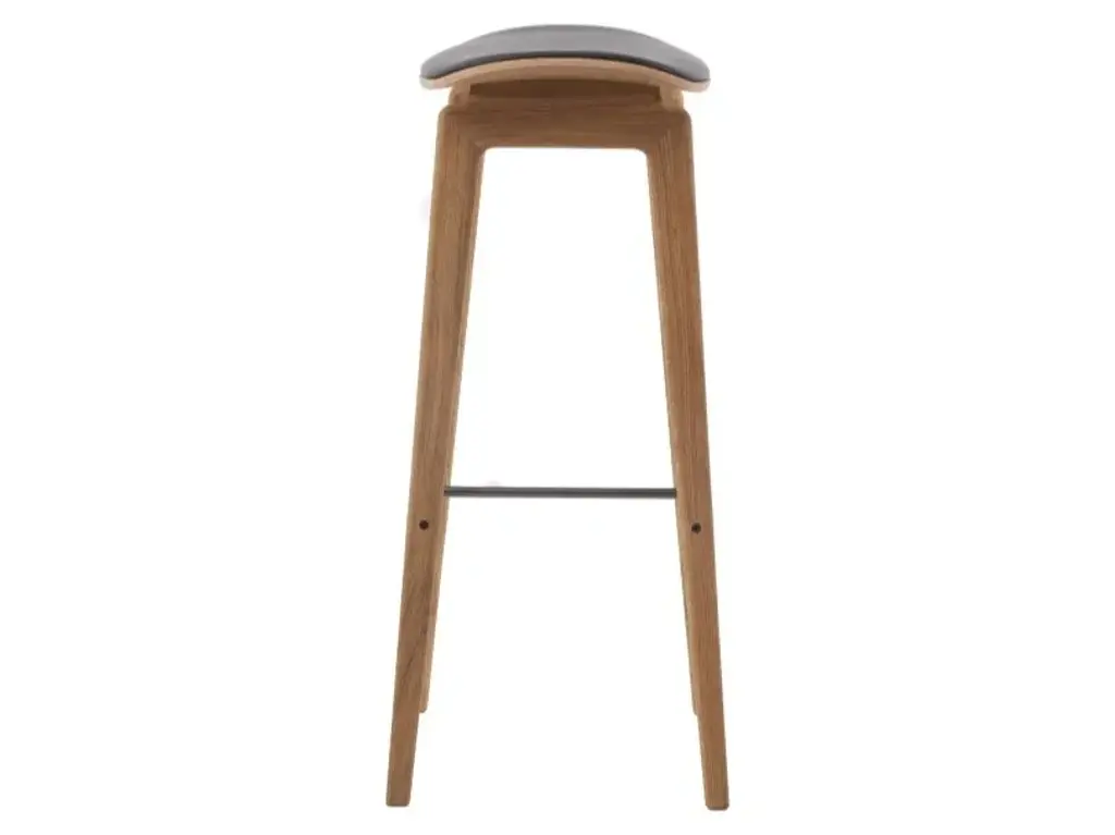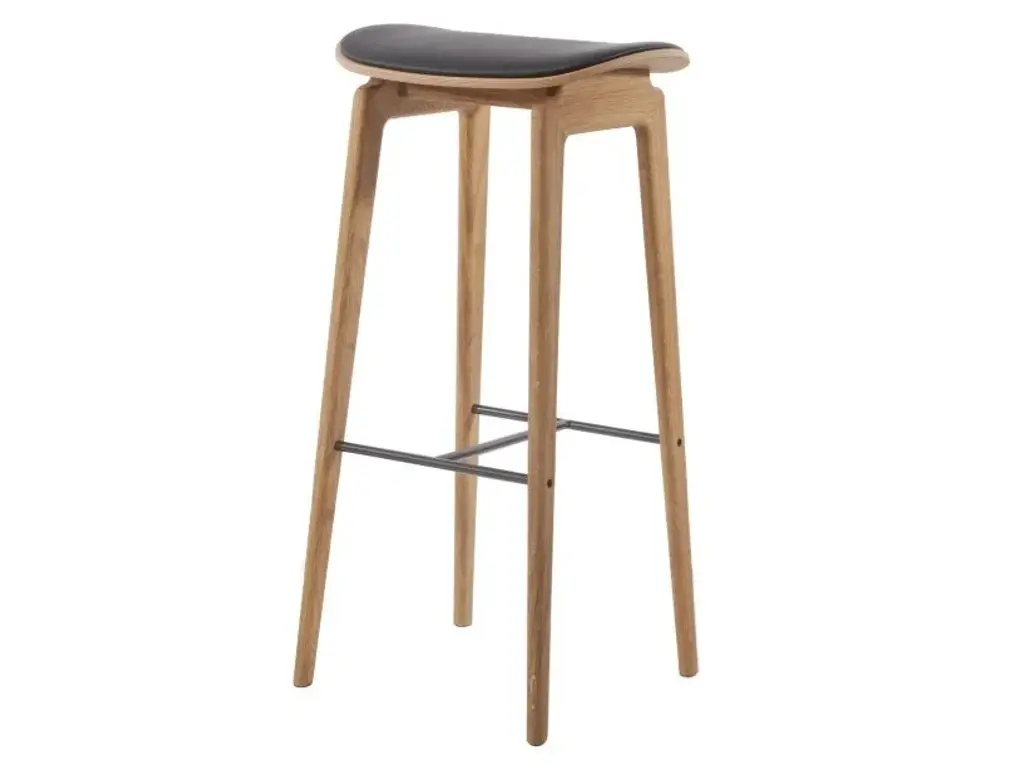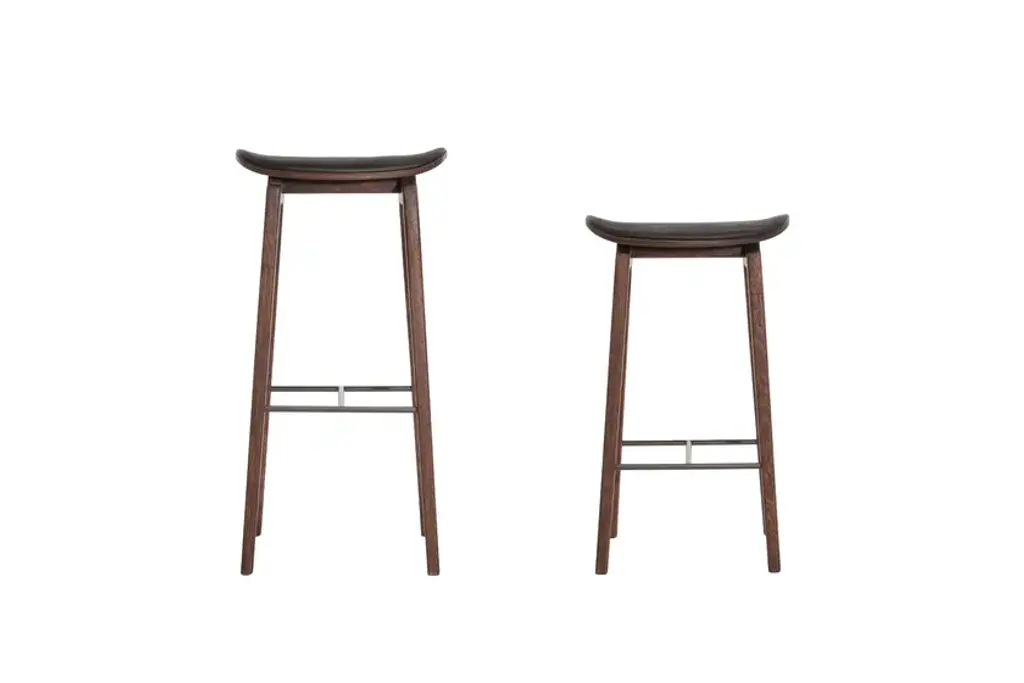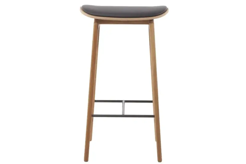 NY11 is a high stool with oak footrest with integrated cushion.The NY11 Bar Chair has a frame hand-crafted from solid white oak and a seat of laminated oak veneer. The leather edition has a seat cushion upholstered with premium leather from Sørensen Leather. The NY11 series is inspired by traditional Danish school chairs designed throughout the twentieth century. The NY11 Bar Chair comes in three heights, making it perfect for kitchen islands in private homes or as a stylish bar chair for public spaces.FRAMESolid oak frame and seat of laminated oak veneer.FRAME VARIATIONSNatural OakDark Stained OakBlack OakSmoked Oak