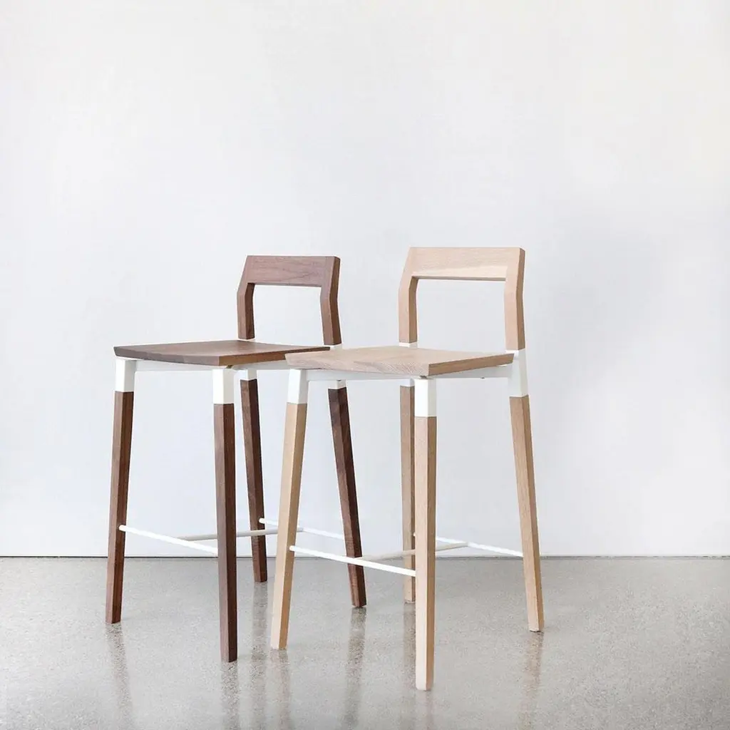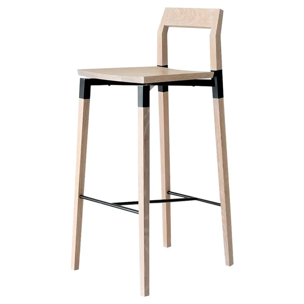 Oak Parkdale stool bar by Hollis & MorrisDimensions: 16.5" x 18.5" x H 38"Materials: Solid wood. Cold rolled steel. Hardwax oil, Powder-coated metal. Also available in natural oak, black oak, and walnut. And, powder coat finish in black, white, or custom. Upholstery upon request.Based out of Toronto, Hollis & Morris takes its name from an intersection in Halifax where the company started as a series of garage explorations in design. A steadfast commitment to function with a distinctive approach to design. Hollis & Morris creates handmade furniture and lighting which carefully balances modern and honest designs. Versatile, well crafted, and timeless. Pieces by Hollis & Morris easily complement residential, commercial, and hospitality spaces. Driven by respect towards natural and honest processes, trademark integrations of solid wood and metal celebrate the inherent strengths of each material, resulting in thoughtful, quality pieces made to last with you throughout the years.