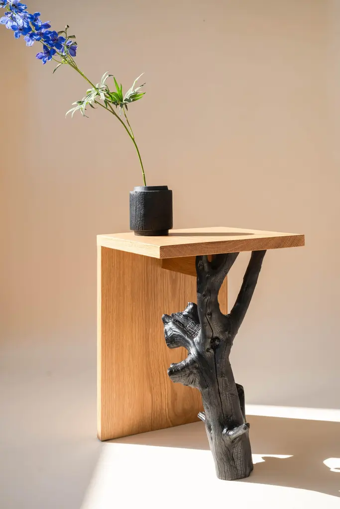 Oak Root Stool by Daniel ElkayamOne of a KindDimensions: D 30 x W 30 x H 45 cmMaterials: Oak WoodDaniel Elkayam — Designer Jerusalem-born Art-designer and Photographer based in Tel-Aviv. Operating in the field of sustainable home decor and specializing in conceptual design, material exploring, and story-telling through objects.Graduated in 2019 his Bachelor's studies at the Industrial design department at Bezalel Academy of Arts and Design, Jerusalem. A former member of the Bezalel Alumni Design Incubator 2020. Won the excellent scholarship of America-Israel cultural foundation of 2019Inspired by nature and its phenomenons, the artist transforms natural materials and aesthetics into one-of-a-kind unique objects.In his works, Daniel implements his curiosity and yearning for unrefined aesthetics, and by material transformation and unique techniques he is developing in his studio, he shows how unattractive materials can be not only valid but luxurious.Elkayam examines the range between art and design by taking things in and out of their context, creating hybrids between different worlds of content, intervening in natural processes, while leaving a gap for the unexpected, the unknown.He expresses his inner world and illustrates his ideas by creating objects and experiences.Through his perspective of materiality, and empathetic vision of his surroundings, he developed an intuitive way of creation with experimental materials such as algae, corrosion, charcoal, and more. Every collection of objects expresses different material research and follows curious narratives and a variety of topics such as locality, transience, and decay of materials.